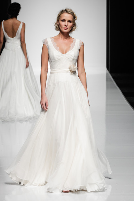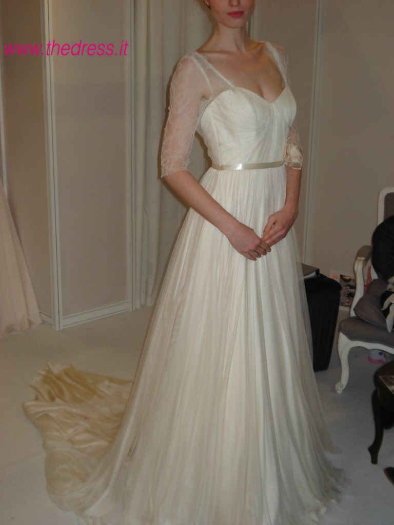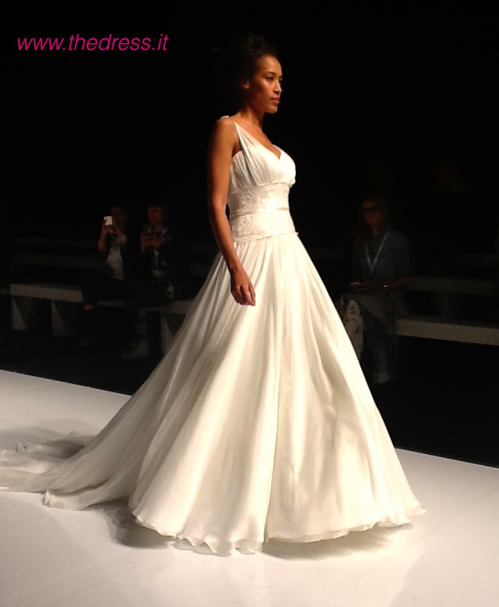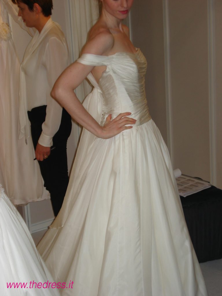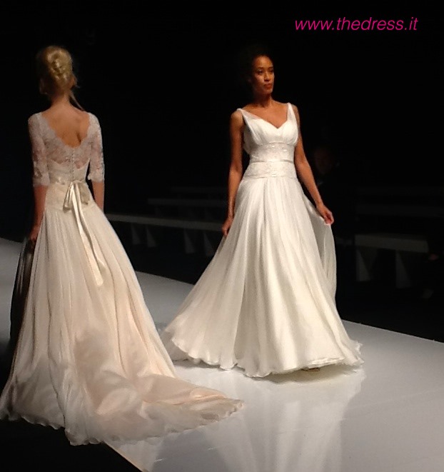 Sempre presenti gli abiti da sposa tipici e popolari della stilista, con gonne morbide e fluttuanti in chiffon di seta ed un sapiente uso dei toni rosa cipria e pesca.