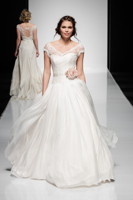 Molto romantici gli abiti da sposa rosa “Azalea”, in morbida seta, con corpetto in pizzo francese e l'abito da sposa “Primrose”, con corpetto in pizzo Chantilly e gonna in chiffon.