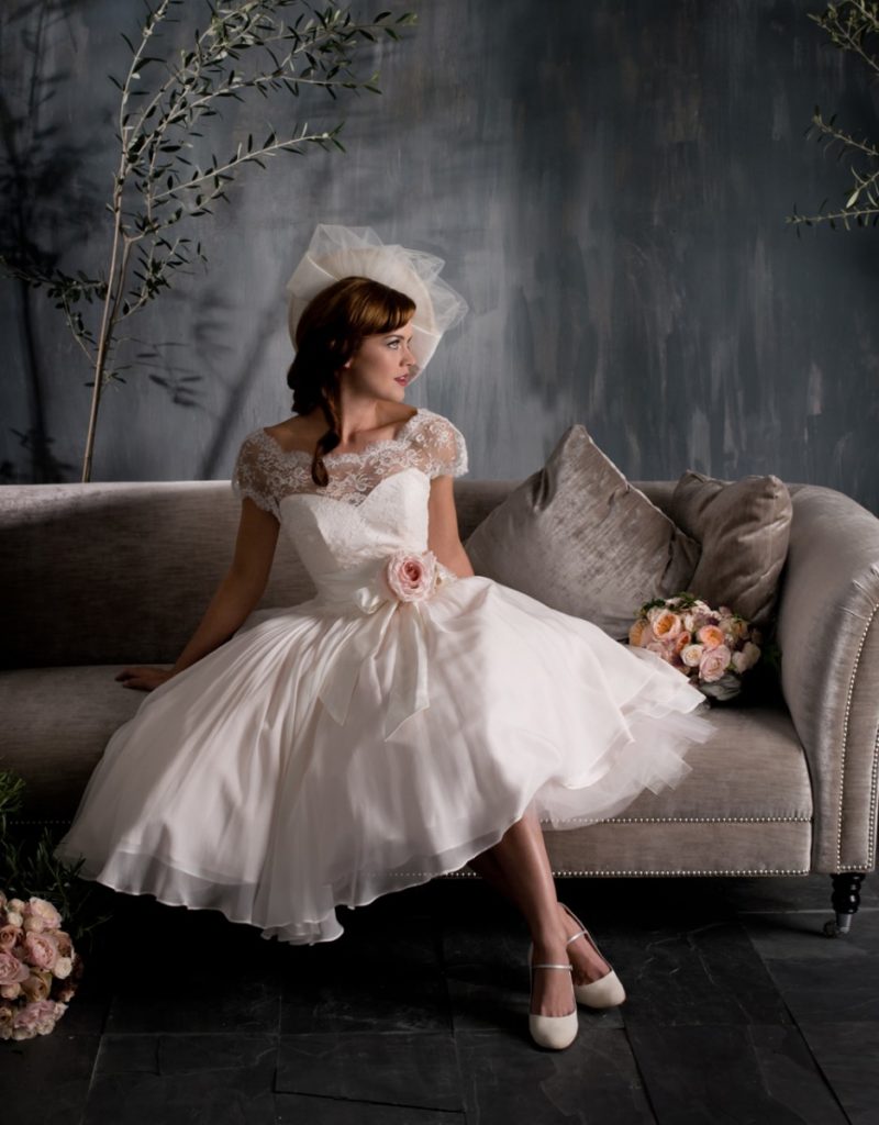 All'abito è possibile abbinare la giacchina “Hepburn”, in pizzo.