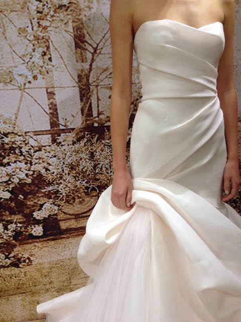 Notevoli anche gli abiti da sposa in Magnolia di seta, lisci o con drappeggi.