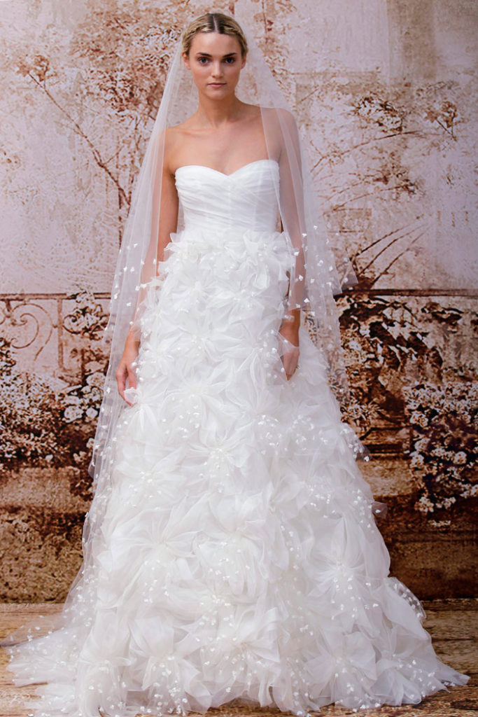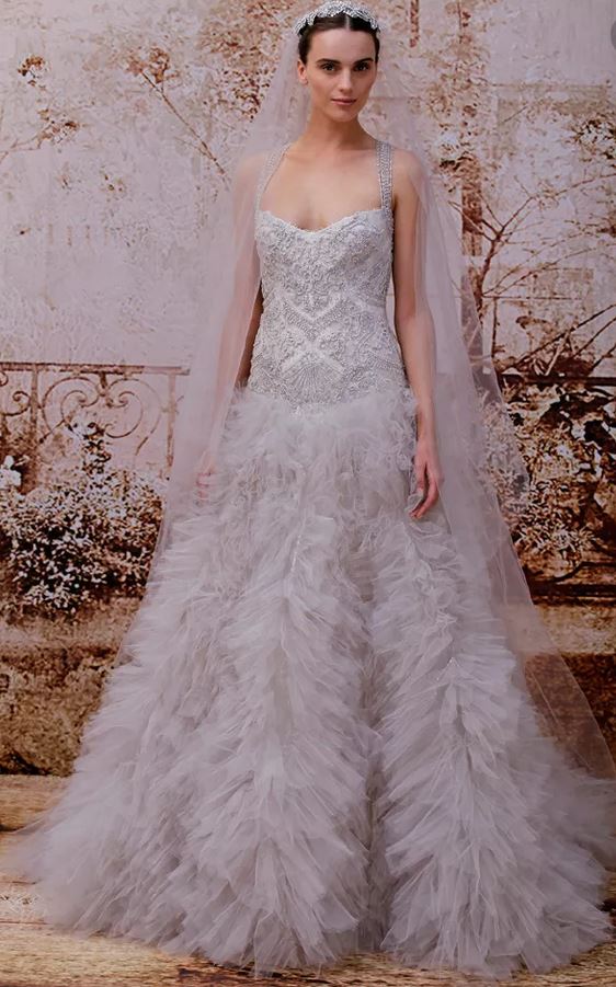 La collezione sposa Monique Lhuillier Fall 2014 si presenta fedele allo stile inconfondibile della stilista, che veste una donna delicata e femminile, protagonista di una fiaba contemporanea.