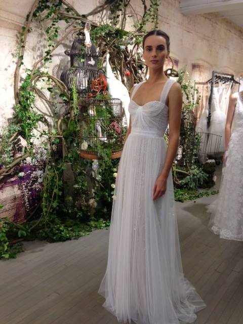 Atmosfera romantica e da fiaba, come tradizione, per presentare la collezione sposa Monique Lhuillier Fall 2014. Nell'ambito della New York International Bridal Week la stilista presenta abiti, scarpe e accessori per la sposa e la cerimonia (come bellissimi abiti da damigella), così come tavole imbandite con le linee firmate per Wedgood e Waterford, gioielli, profumi e molto altro.
