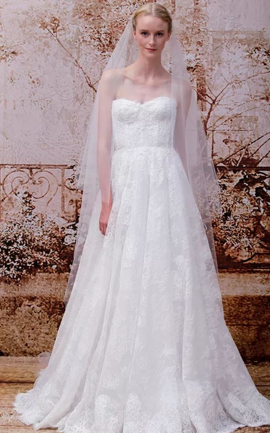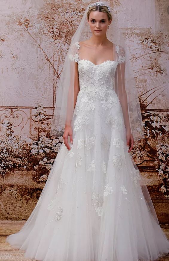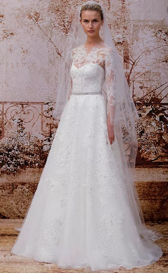 Per la sposa tradizionale, perfetti gli abiti da sposa A-line con scollo a cuore, in tulle e pizzo, abbelliti maggiormente da ampi veli da sposa.
