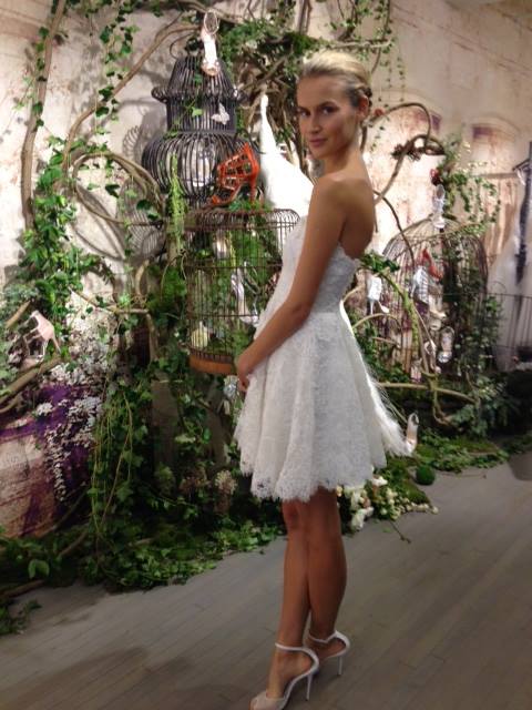 La presentazione della collezione sposa Monique Lhuillier Fall 2014 avviene nel suo showroom di Manhattan, trasformato per l'occasione in un vero e proprio giardino incantato.