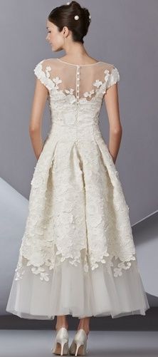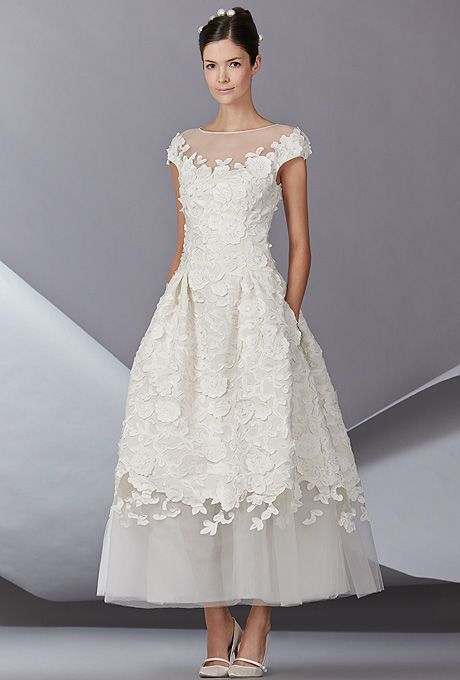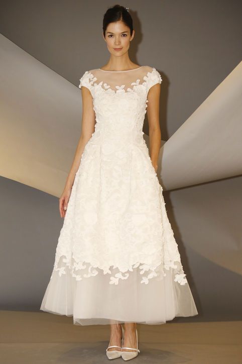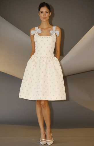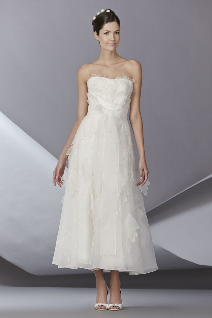 Dopo aver visto innumerevoli matrimoni dove la sposa, subito dopo la cerimonia, usciva frettolosamente dal modello romantico per infilarsi un secondo abito da sposa più corto e funzionale, Carolina Herrera ha voluto proporre una collezione che comprendesse proposte di abito da sposa corto al ginocchio o alla caviglia.