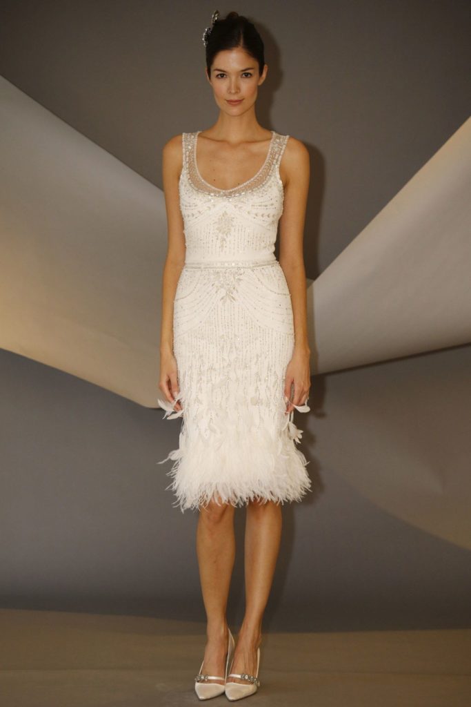La collezione sposa Carolina Herrera Fall 2014 accorcia gli orli, proponendo unicamente modelli di abito da sposa cocktail o tea-length.