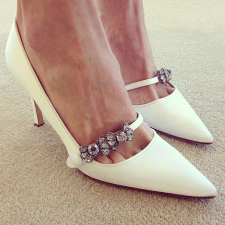 Notevoli anche i dettagli delle scarpe da sposa Carolina Herrera.
