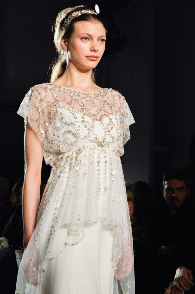 La collezione sposa Jenny Packham Spring 2015 è ispirata dai ritratti fotografici delle signori appartenenti alla buona società inglese in costumi classici, scattati da Madame Yevonde negli anni '30, all'alba della fotografia a colori, e conosciuti come “Le dee”.