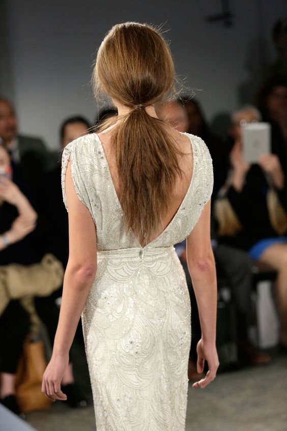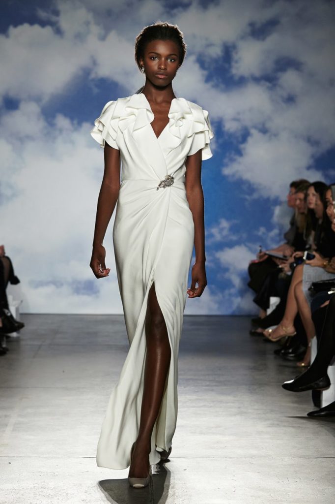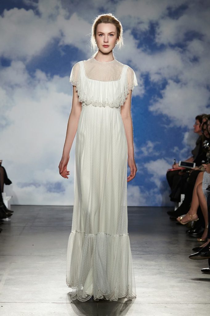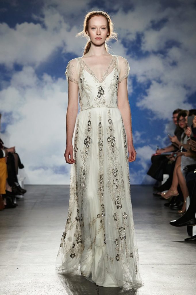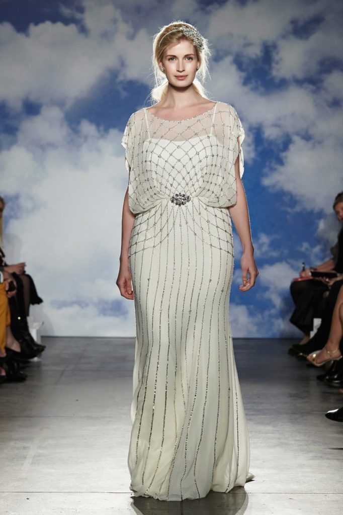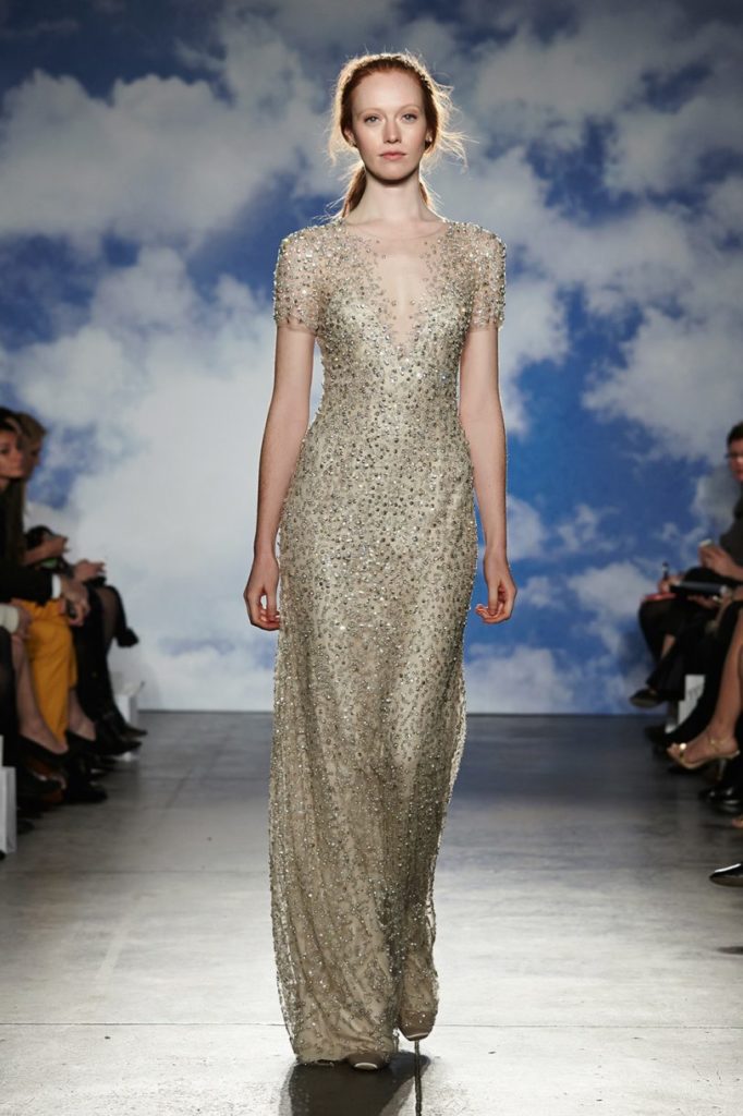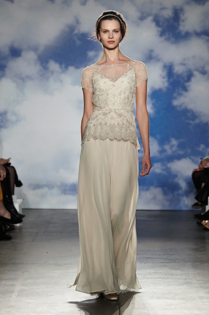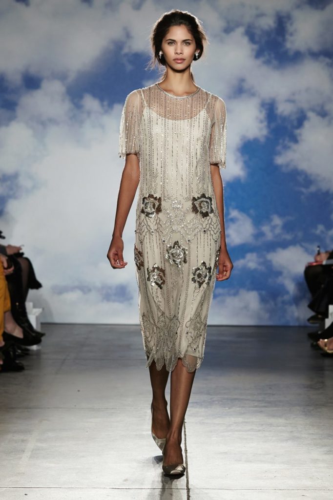 Nella collezione sposa Jenny Packham Spring 2015, diversi gli abiti da sposa che, con diverse varianti stilistiche, lasciano scoperte le spalle.