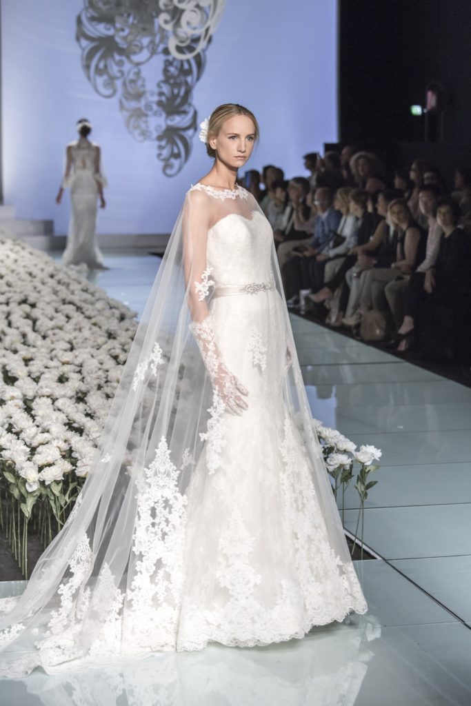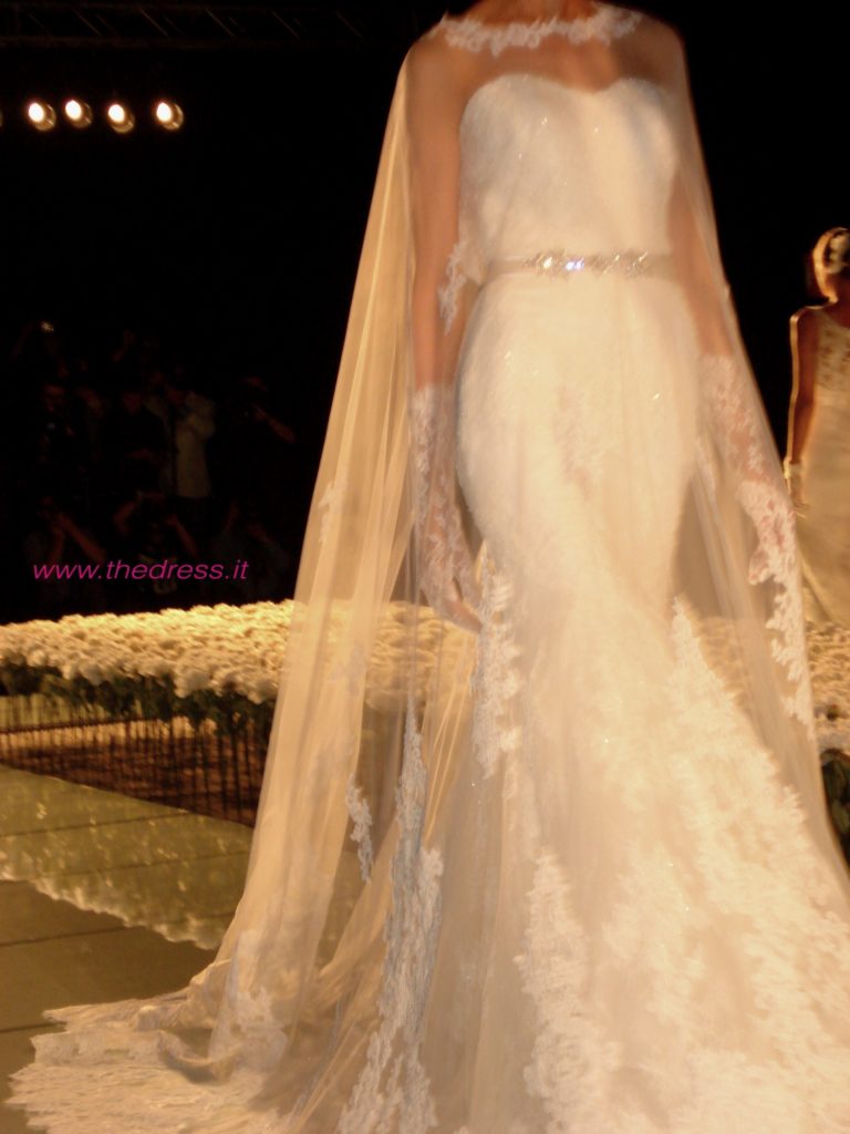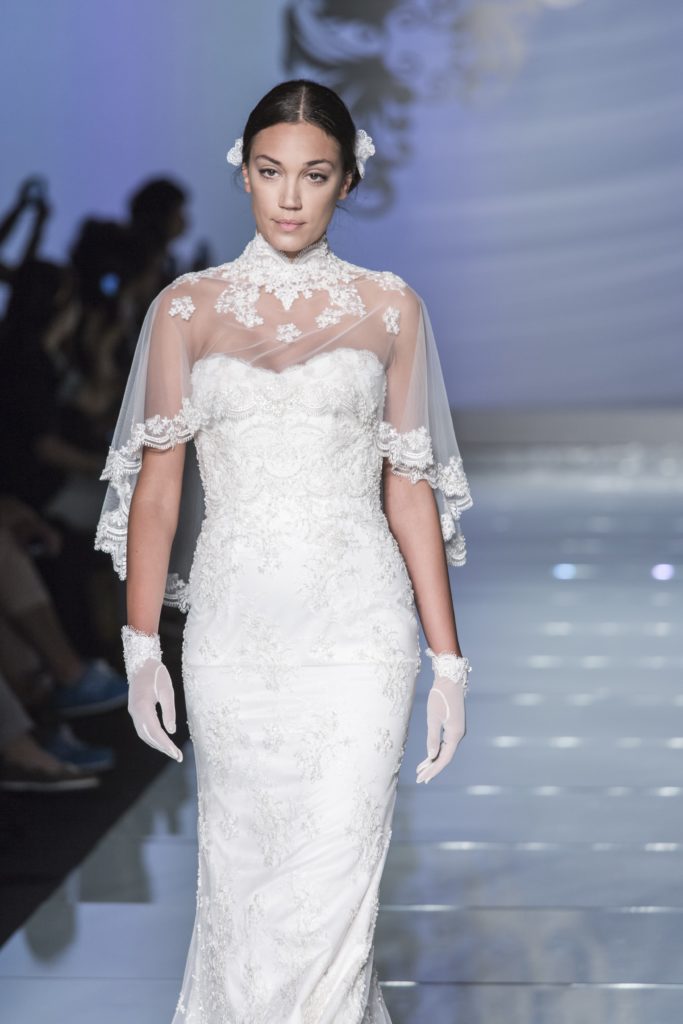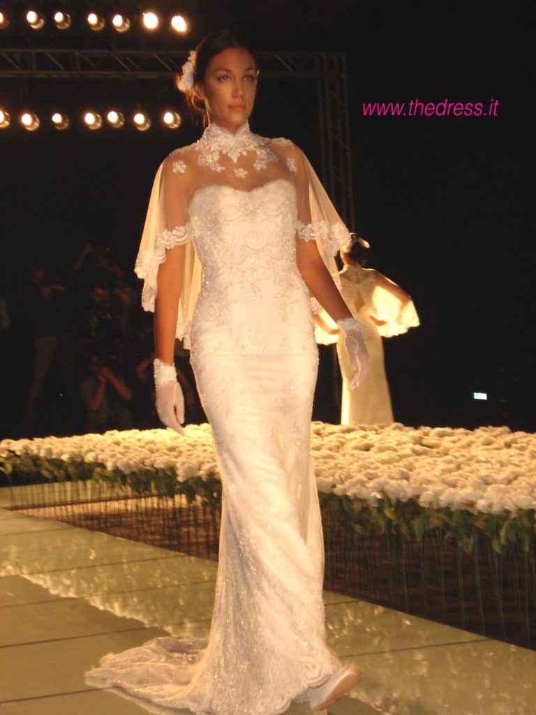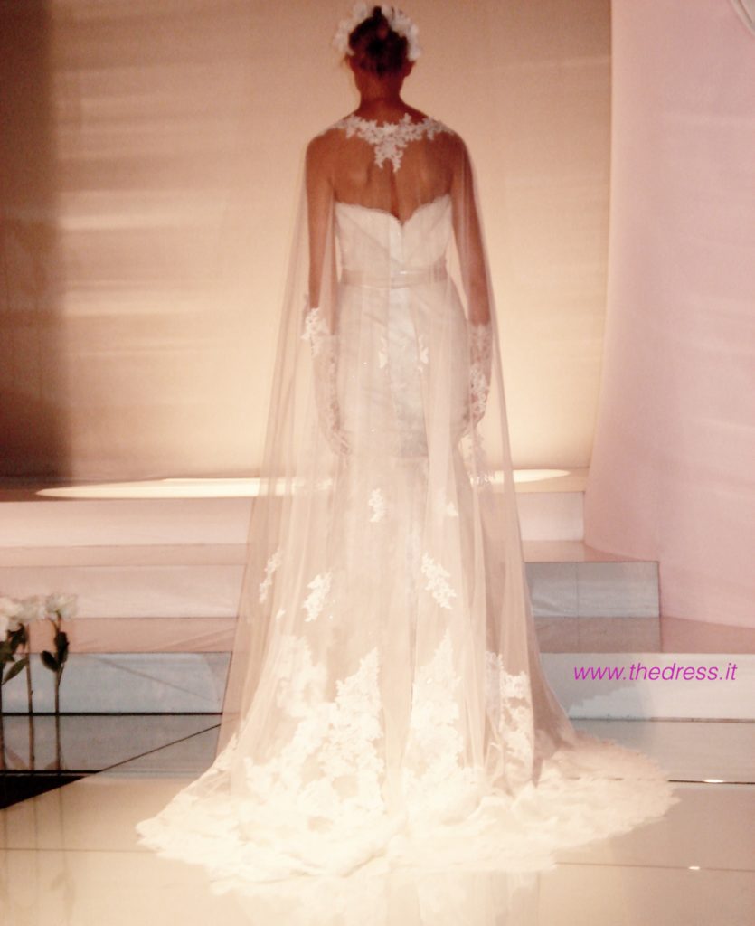 Una scelta di classe anche la proposta dell'abito da sposa abbinato a mantella, nella versione corta o lunga.