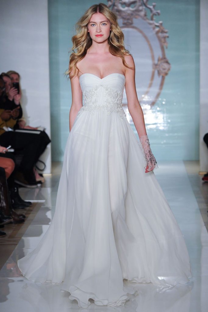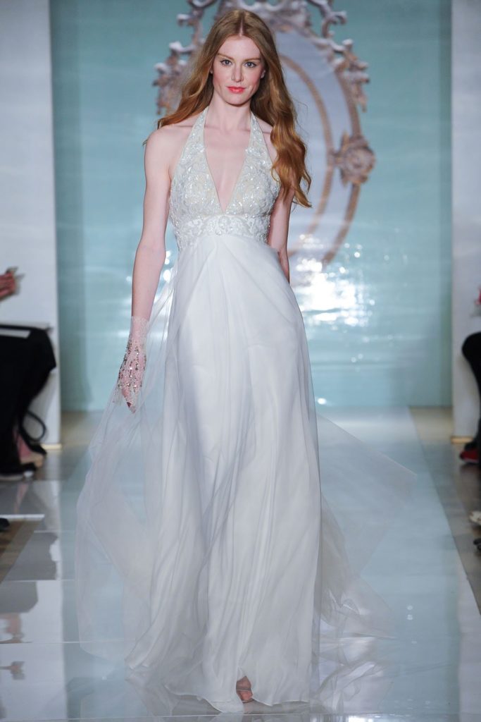 La collezione sposa Reem Acra Spring 2015 ritrae una principessa eterea, leggera e preziosa, avvolta da abiti leggeri e non troppo ampi .