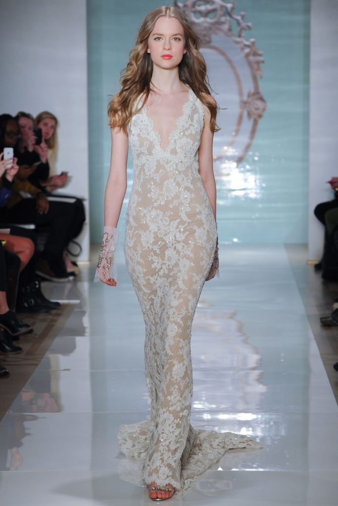 abito da sposa,Reem Acra,schiena aperta,schiene velate,scollo a illusione,Spring 2015