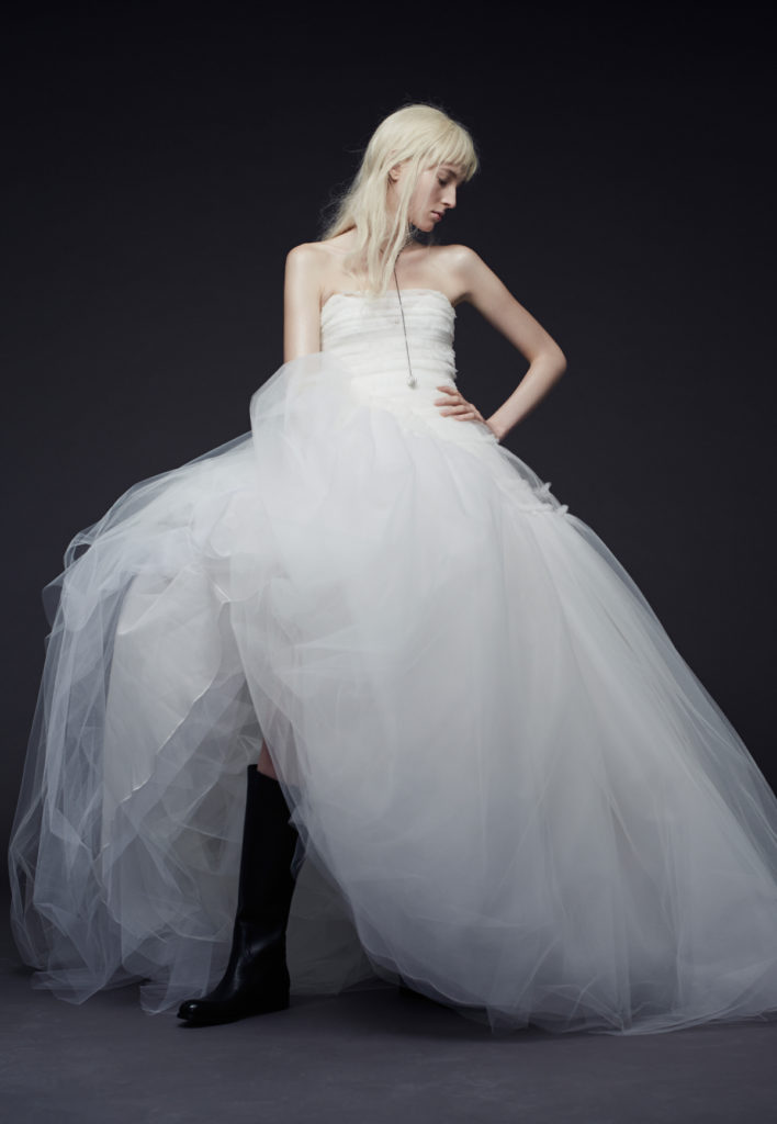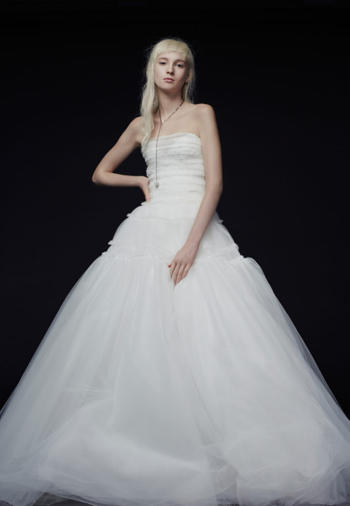 Gran chiusura con il ball gown dalle ampia gonna in tulle, che ha reso celebre la sposa Vera Wang.