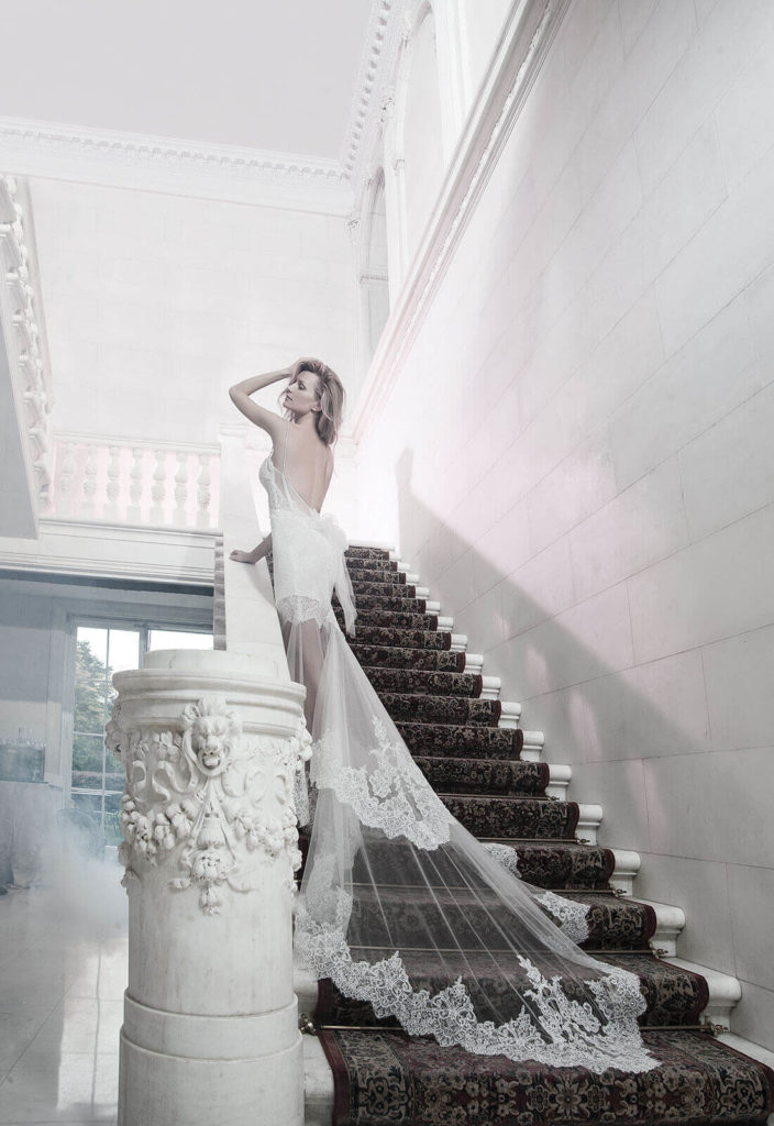 Uno stile fantasioso, stravagante e glam, che trova massima espressione nell'ultima uscita della passerella, con un abito che trasforma la sposa in una sensuale e fiabesca farfalla, grazie alla coda rimovibile.