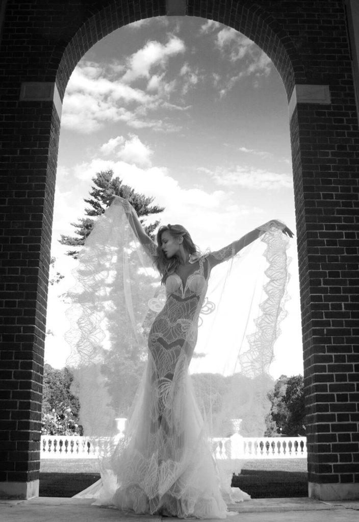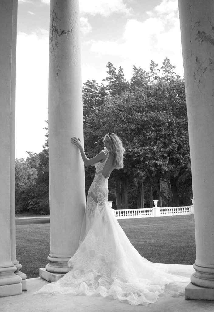Ancora motivi che richiamano la farfalla negli abiti da sposa con trasparenze e tagli laser.
