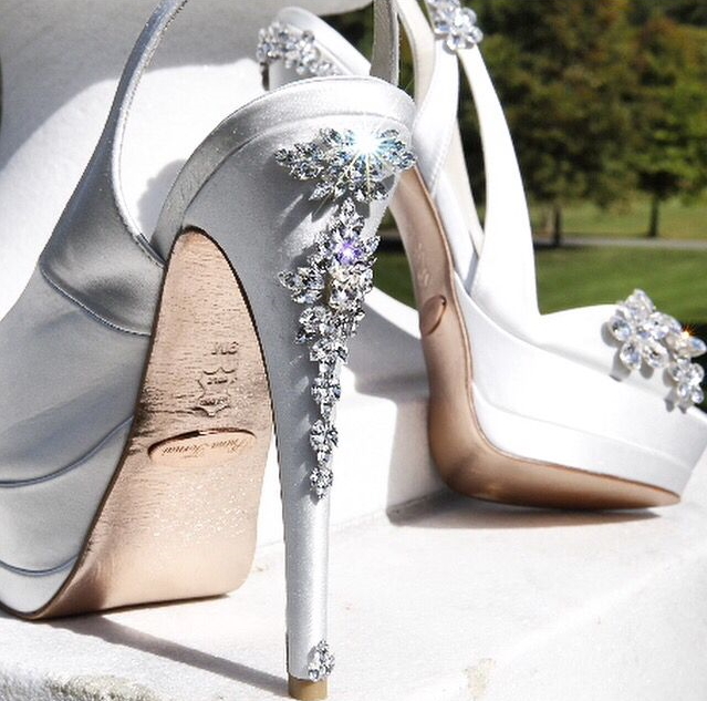 Infine, diamo un'occhiata alle splendide scarpe da sposa Pnina Tornai, sensuali, sofisticate e mozzafiato, in satin e cristalli Swarovski, in perfetto abbinamento con gli abiti della stilista.