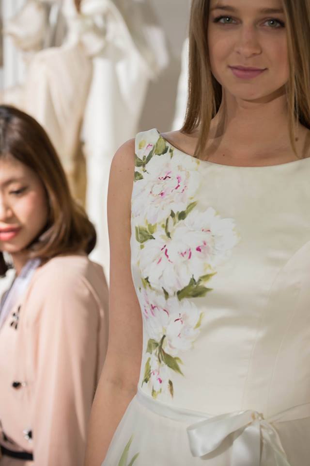 “Generalmente cerco i tessuti, disegno i ricami e comincio a buttar giù i bozzetti prima di creare una collezione – spiega Marguerite Hannah - in un processo creativo che, invece di iniziare e fermarsi e così via, prosegue e scorre con la creazione di un abito dopo l'altro, dando fluidità e continuità alla collezione. Quest'anno ho voluto mantenere la forma e la struttura del brand ma con un tocco in più di leggerezza. Sono stata ispirata dalle stampe floreali di Charles Rennie Mackintosh, con un approccio più attento alla luce e agli acquerelli, da cui il nome della collezione. Per dare una nota di colore, ho lavorato con un meraviglioso artista spagnolo che ha dipinto 3 temi per gli abiti della collezione.”