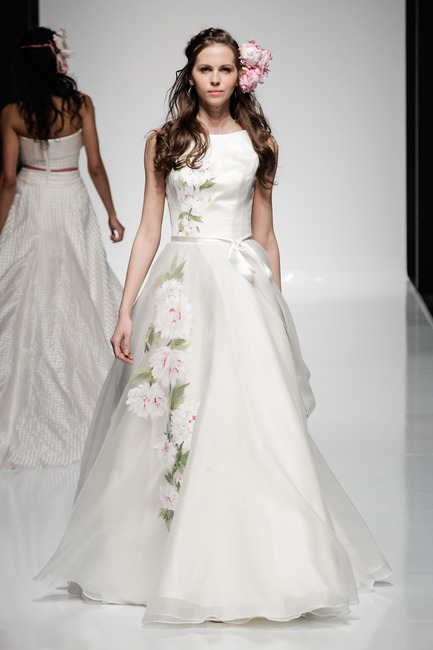 La collezione sposa Alan Hannah Spring 2016 è ispirata alla delicatezza e bellezza delle stampe floreali. Per ricreare l'effetto dell'acqua e dei colori che cambiano con il riflesso della luce, la stilista ha creato abiti da sposa in chiffon di seta e morbido satin con stampe, ricami e dettagli in delicate tonalità pastello.