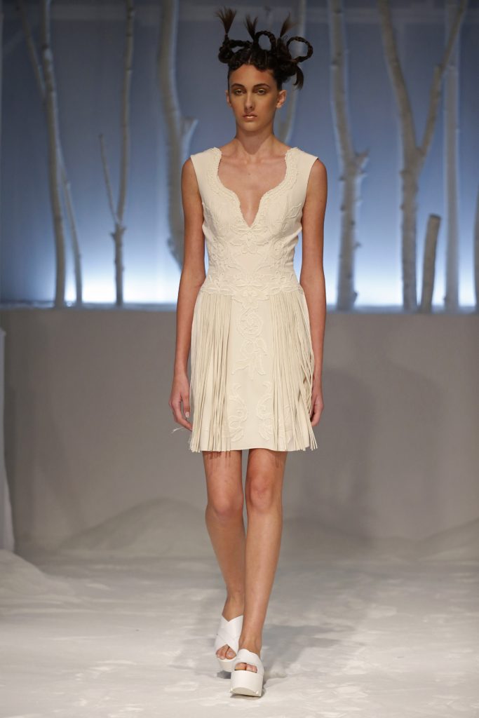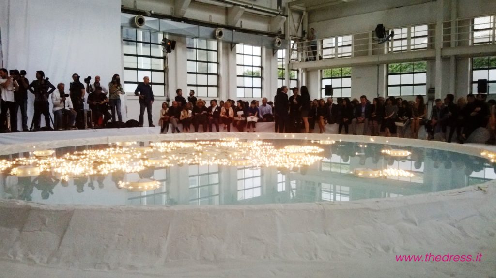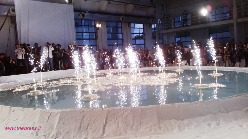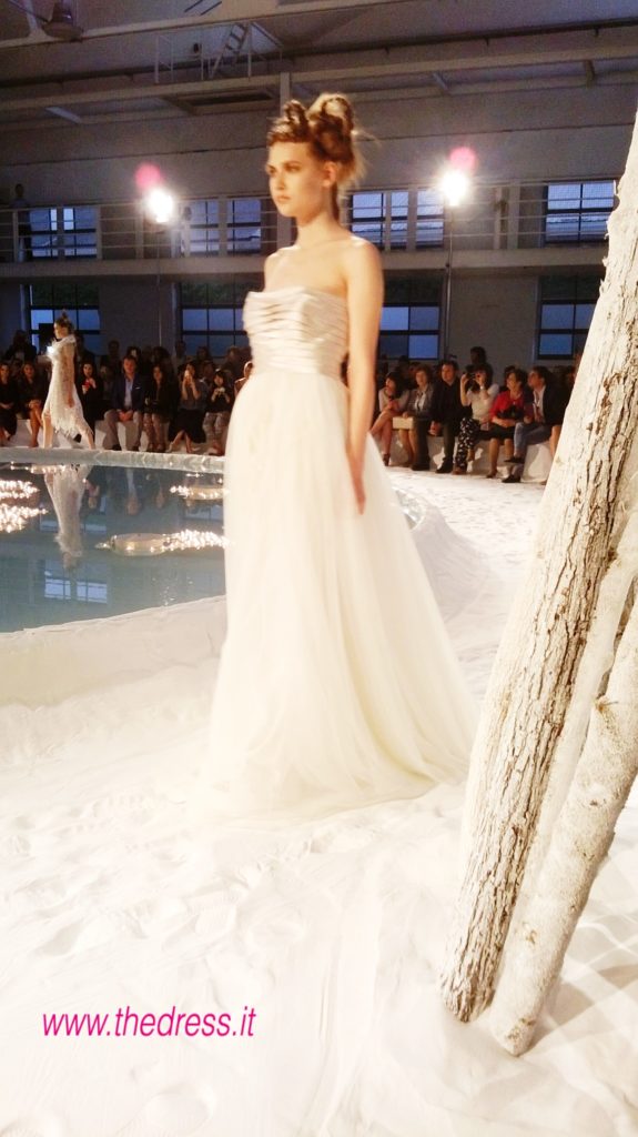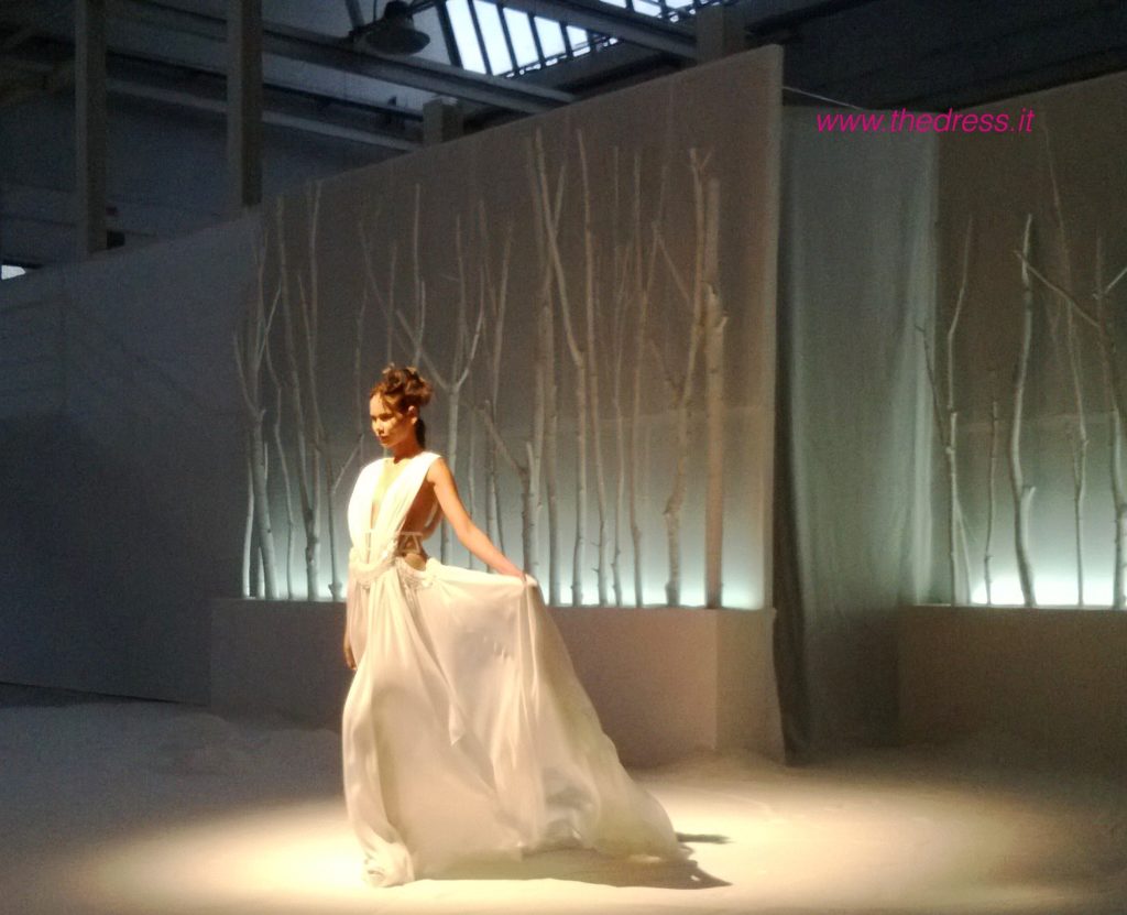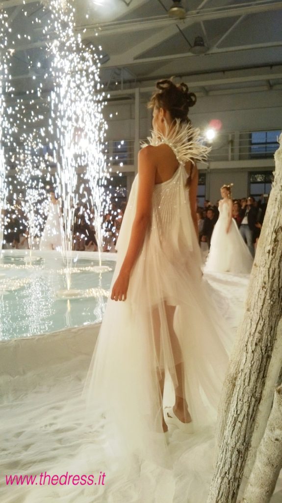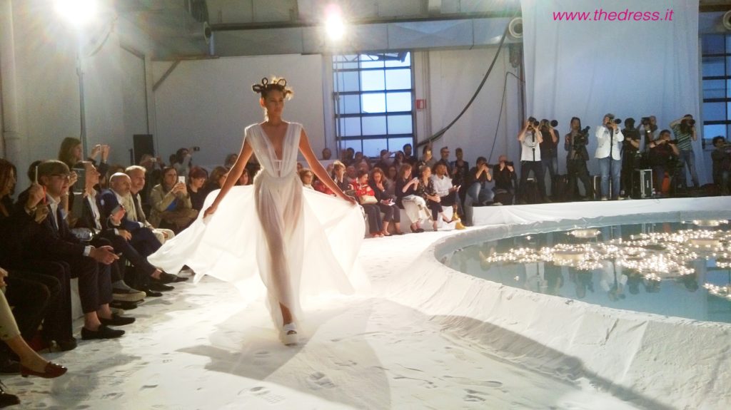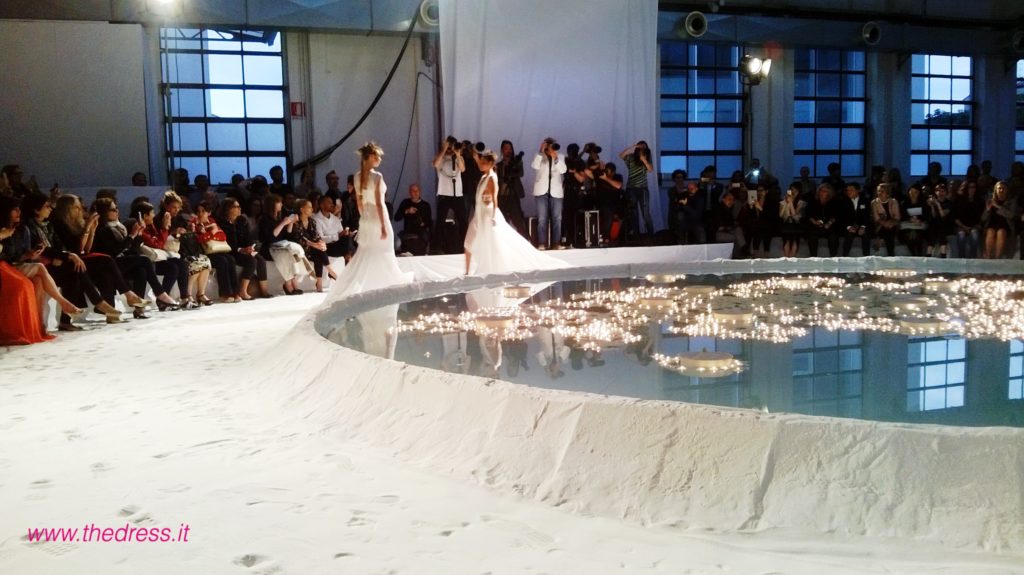 The Dress ha presenziato al fashion show, che in una “candida e futuristica atmosfera, un mix tra un paesaggio lunare e un’incantata foresta di betulle”, come narra il brand, ha visto le modelle di questa collezione sposa David Fielden 2016 sfilare intorno ad una vasca rotonda a simulare un lago, riempita di romantici lumini accesi a galleggiare a filo d'acqua e circondata da tronchi di betulla, camminando su altissime zeppe immerse nella fine e bianca sabbia di polvere di marmo.