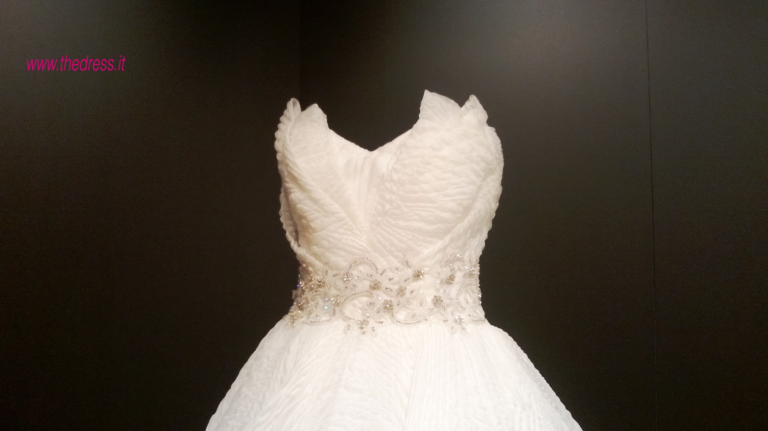 The Dress ha potuto ammirare in anteprima la collezionenell'elegante spazio espositivo allestito nell'ambito di Si Sposaitalia 2015, la fiera bridal aperta ai soli addetti al settore che annualmente riunisce a Milano i migliori brand e designer mondiali.
