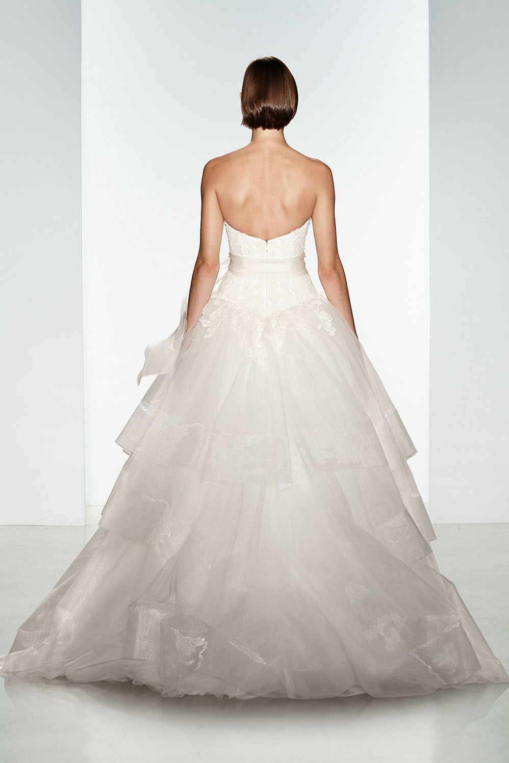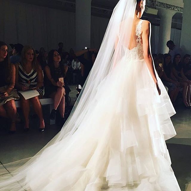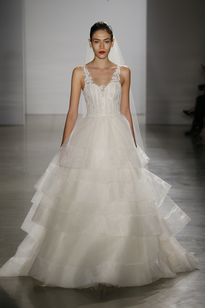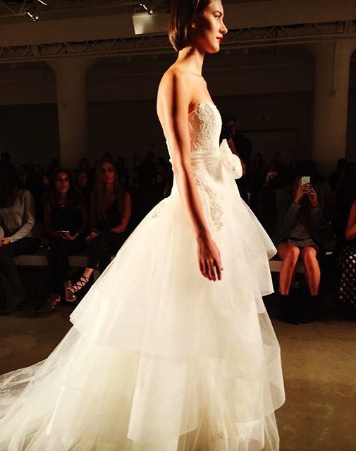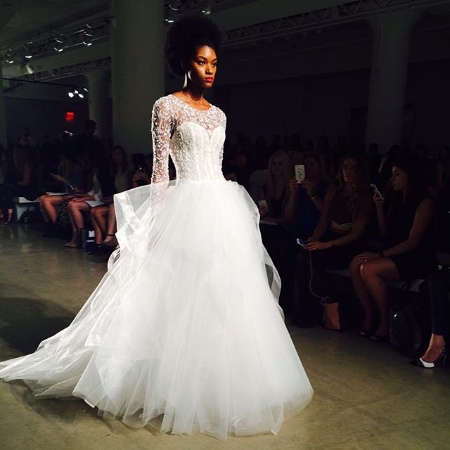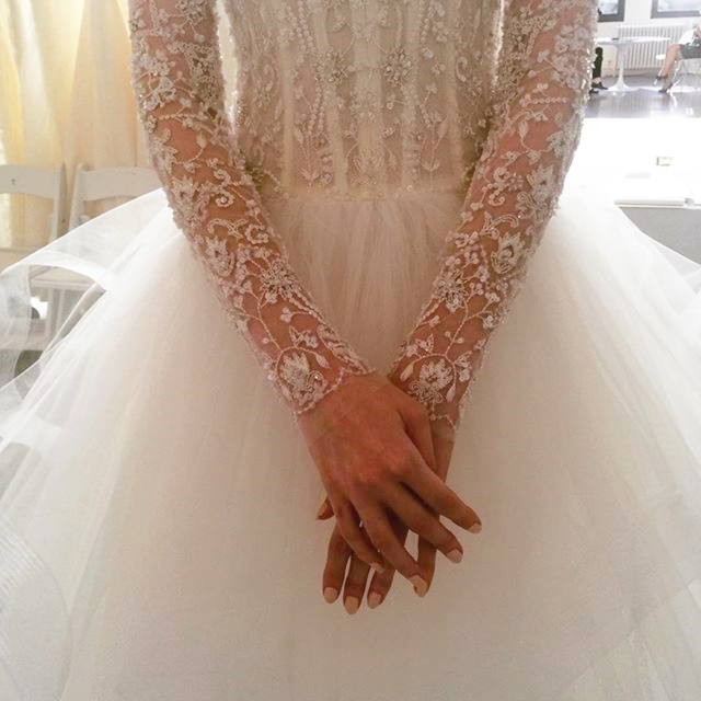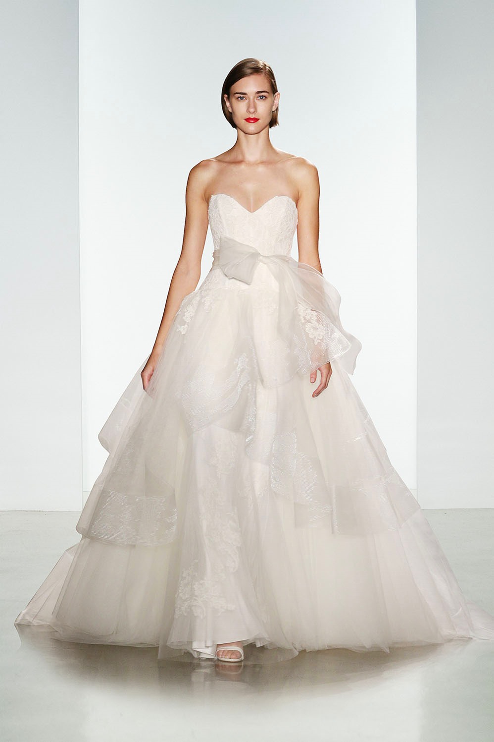 Romanticissimo dalla collezione sposa couture Kenneth Pool Fall 2016 il ballgown Sahara, con gonna a strati in tulle, corpetto con scollo a cuore e applicazioni in pizzo Alençon.