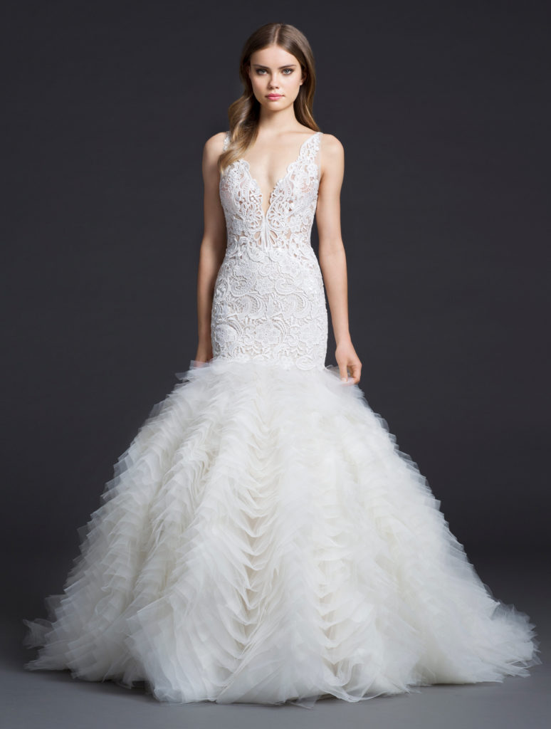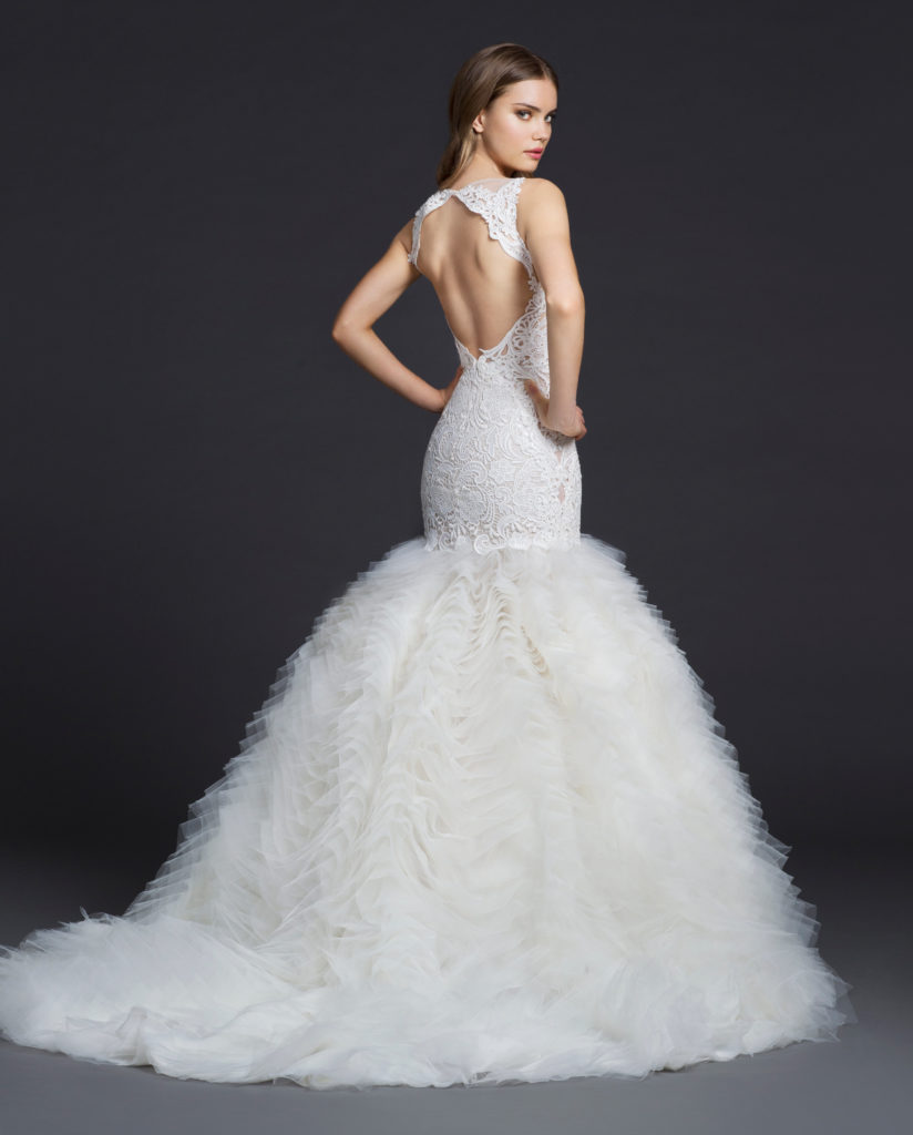 “La collezione sposa Lazaro Fall 2016 – spiega il brand – mixa l'opulenza al romanticismo e celebra la forza e la sensualità delle spose innamorate. Lazaro flirta con la femminilità grazie a ricami impreziositi da pietre, seducenti toni pastello, tessuti leggeri, squisiti pizzi e cattura il moderno romanticismo con una collezione stravagante e fantasiosa che celebra la moda sposa couture”.