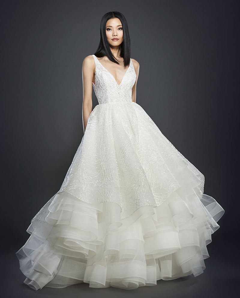 Apriamo la collezione sposa Lazaro Spring 2017 ammirando alcuni abiti da sposa scivolati.