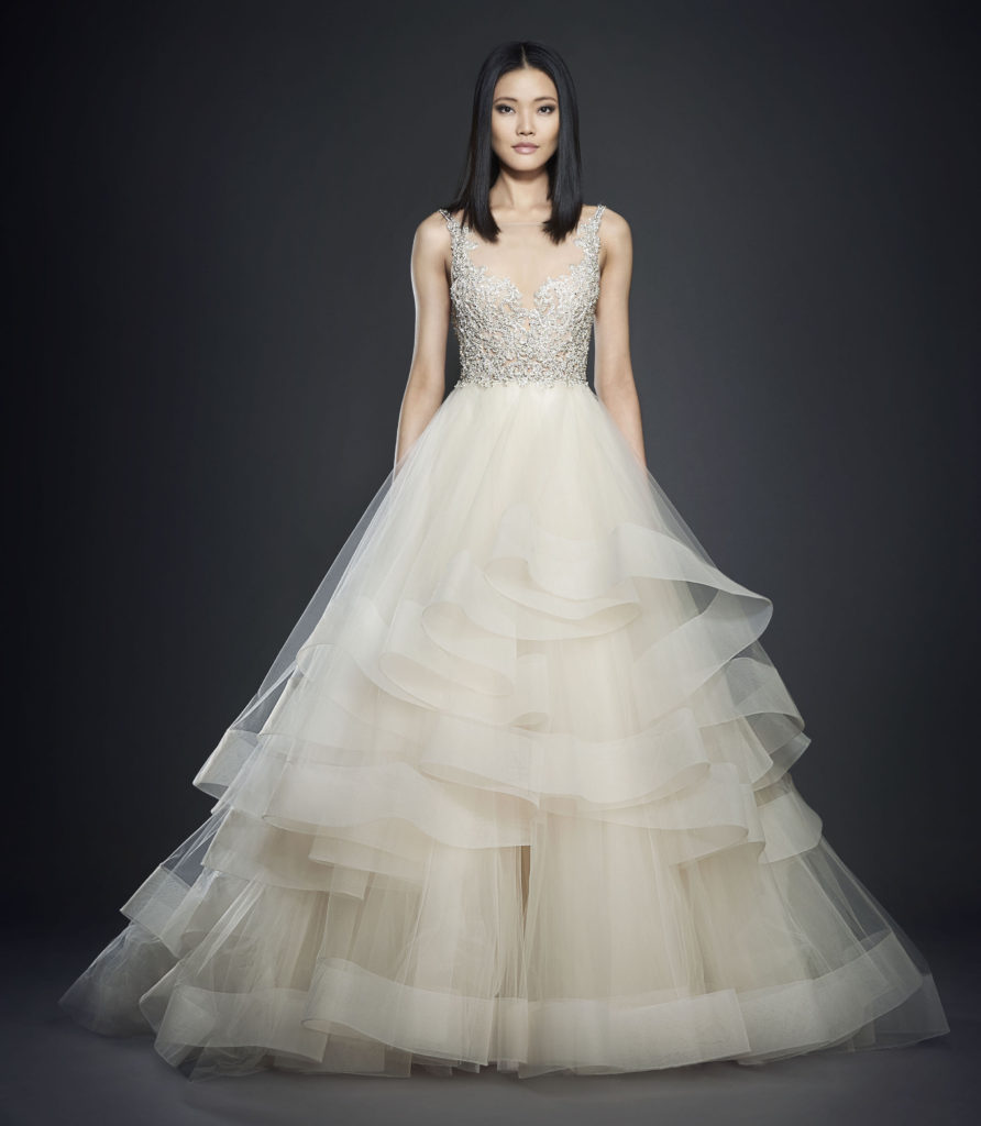 Con la collezione sposa Lazaro Spring 2017 ci tuffiamo in un mondo di romanticismo da sogno, eleganza senza tempo e un tocco di glam da diva.