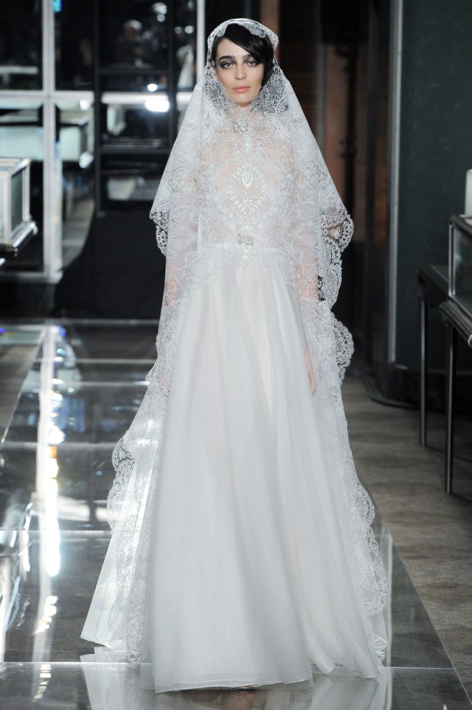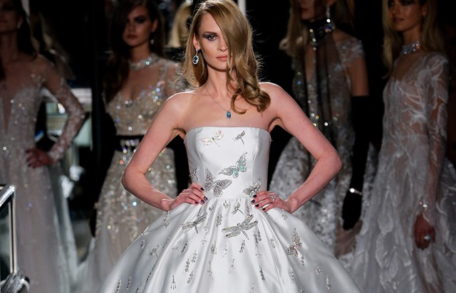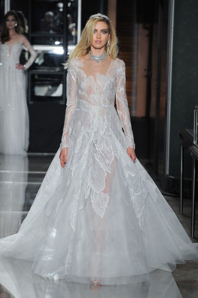 In chiusura di questa collezione sposa Reem Acra Spring 2018, gli abiti da sposa principeschi, anche colorati, con dettagli gioiello e ricami preziosi, come le farfalle applicate al ball gown in taffetà e l'abito da sposa azzurro con ricami oro e velo abbinato, perché, come sottolinea la stilista “La collezione comprende anche abiti che ho realizzato per i reali di tutto il mondo”.