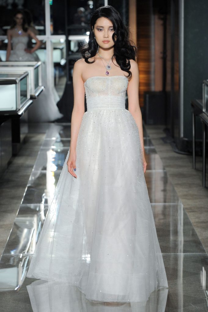 “Adoro il romanticismo e i film – dichiara la stilista – e per molto il fim Colazione da Tiffany mi è rimasto in testa: una visione iconica sempe viva, seppure la casa di gioielli si sia modernizzata. Ho sempre voluto creare una collezione ispirata a quel film e oggi quell'idea è diventata realtà! Tiffany è un punto fermo nel mondo del lusso e penso anche Reem Acra rappresenti il lusso. Avrei semplicemente potuto fare una collezione di abiti da sposa, ma ho voluto spingermi oltre. Questa collaborazione significa molto per me e nel crearla mi sono ispirata al tema Tiffany, dunque ho deciso di creare una collezione di abiti neri in uscita all'inizio dello show - prima degli abiti da sposa - con dettagli gioiello che sembrano vera gioielleria, il tutto per celebrare l'arte del brand.”