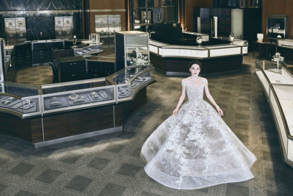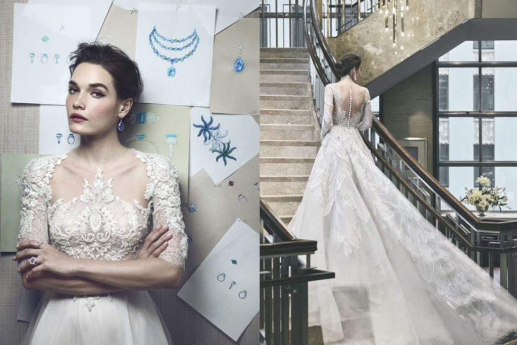 La collezione sposa Reem Acra Spring 2018 si farà sicuramente ricordare per due motivi: la concomitanza con il ventesimo anniversario del brand e la felicissima collaborazione con Tiffany & Co., attivata proprio per tale occasione. E per celebrare questa sontuosa partnership, la stilista ha deciso di presentare, ad inizio della New York International Bridal Week, la collezione sposa Reem Acra Spring 2018 proprio nel flagship store Tiffany della Fifth Avenue, una sede resa storica del celebre film “Colazione da Tiffany” che consacrò Audrey Hepburn icona di stile, un'immagine che ritroviamo evocata nella campagna promossa per tale occasione.