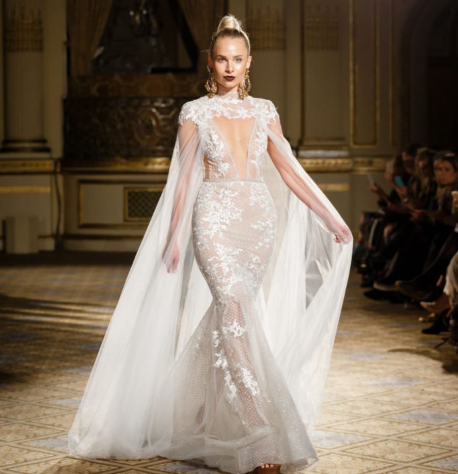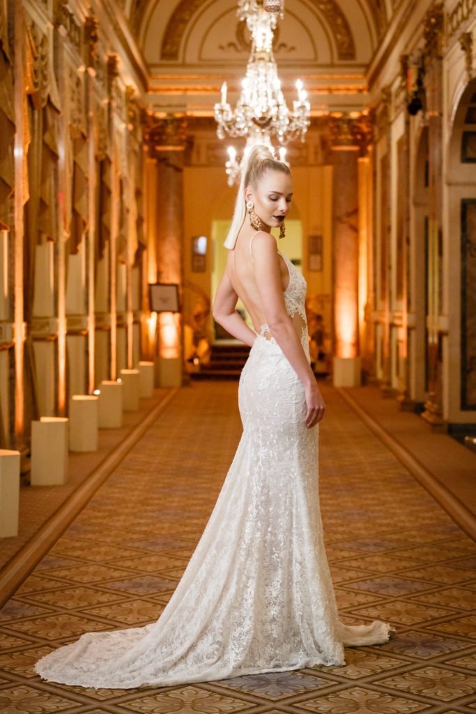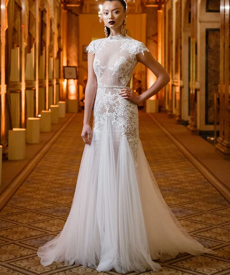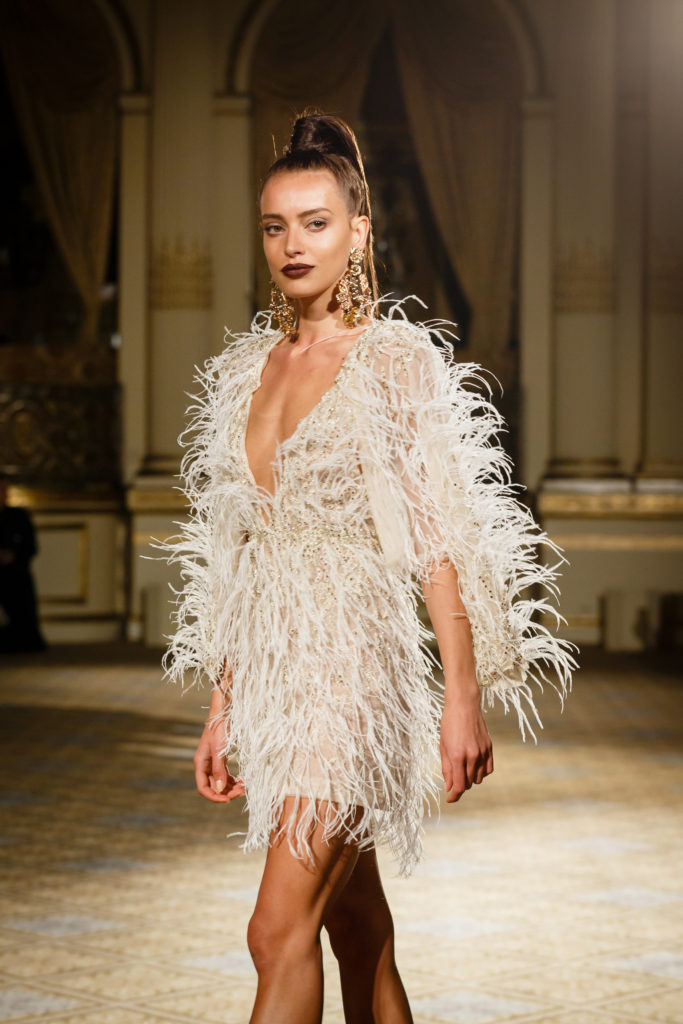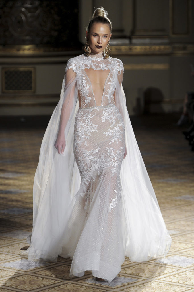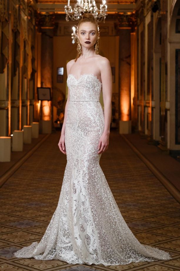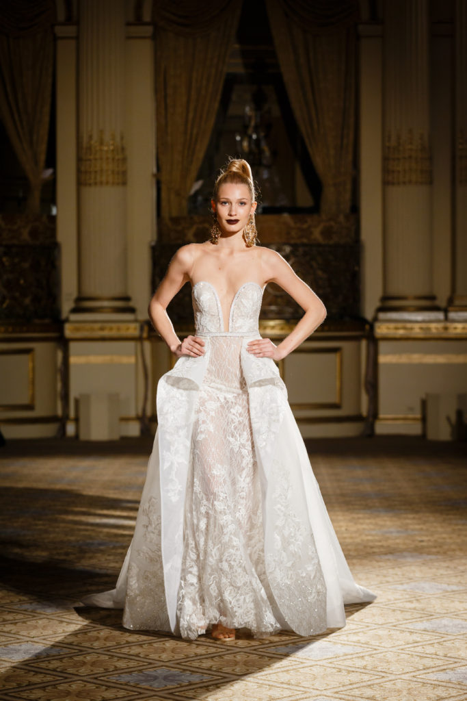 Gli occhi degli operatori della New York International Bridal Week sono stati puntati sui dettagli di questi unici abiti da sposa couture, come gli inserti in pizzo ricamato, le pailettes, i ricami Art Déco, i fili metallici e le piume.