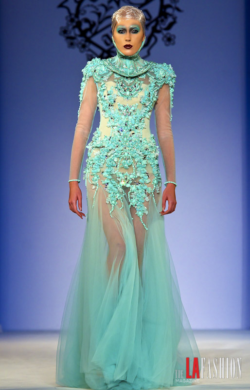 Secondo outfit da grandi occasioni – bocciato su scala mondiale – per Natasha Bedingfield, che ha scelto Amato Couture – Furne One 2012 Collection.