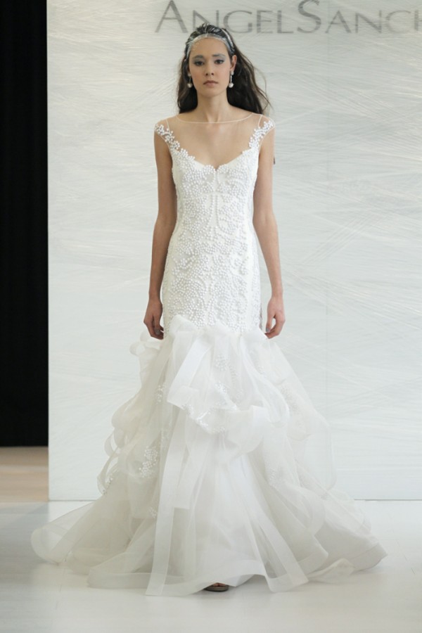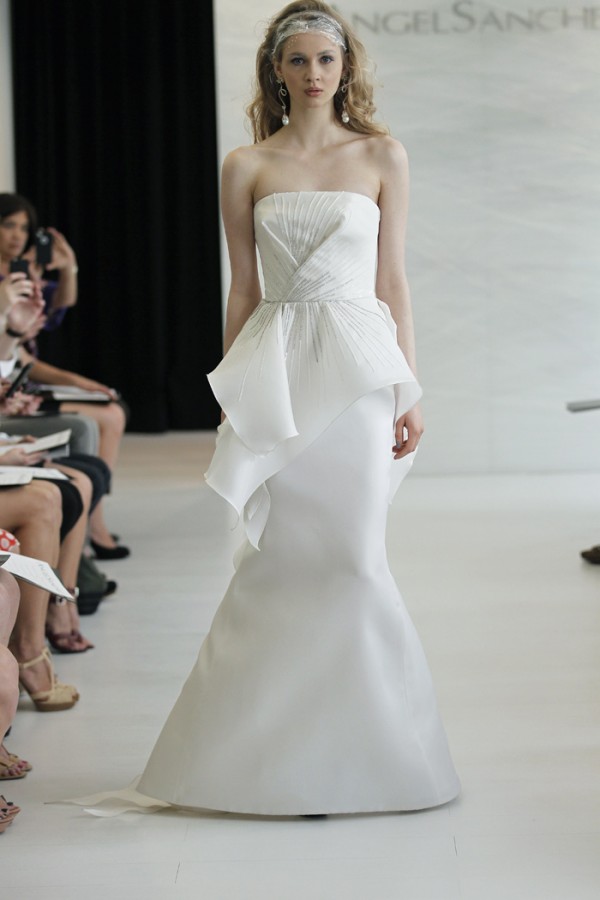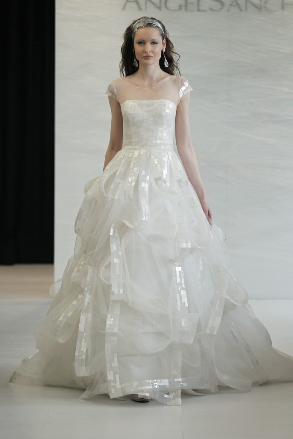 Davvero moderna, elegante e ricercata nei tessuti come nei dettagli la collezione sposa Angel Sanchez Spring 2013.