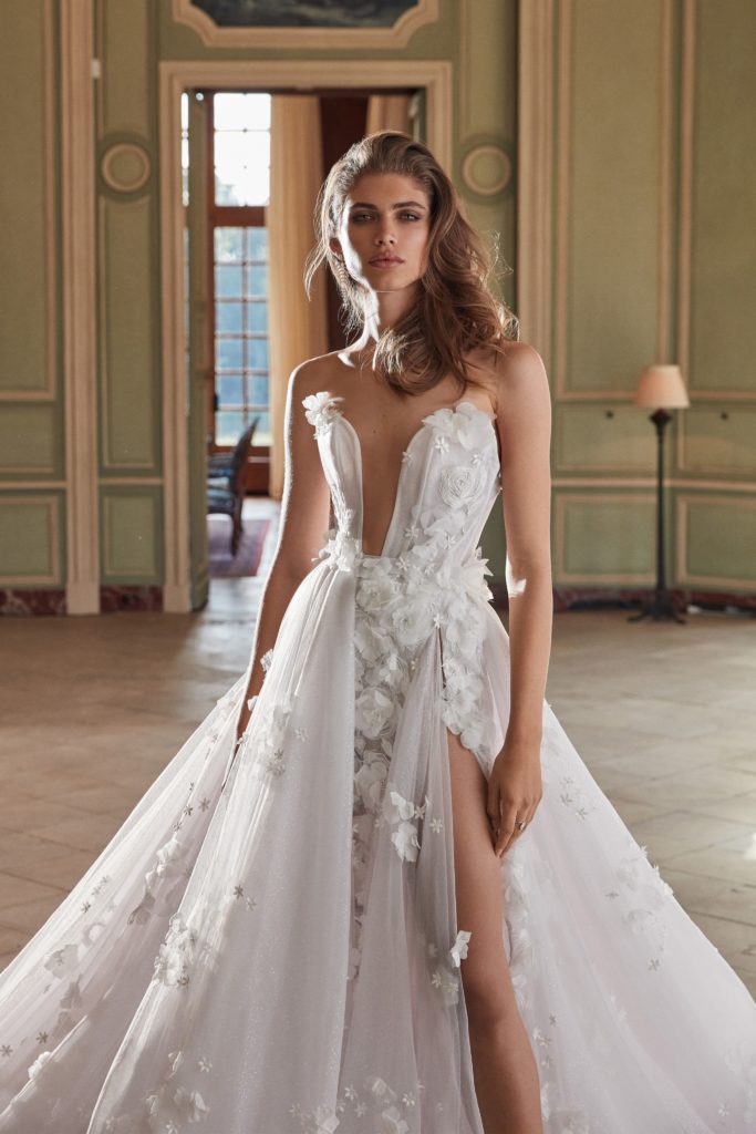 Attenzione anche ai ricami floreali fitti e sottili così come a quelli 3D, per una sposa davvero preziosa.