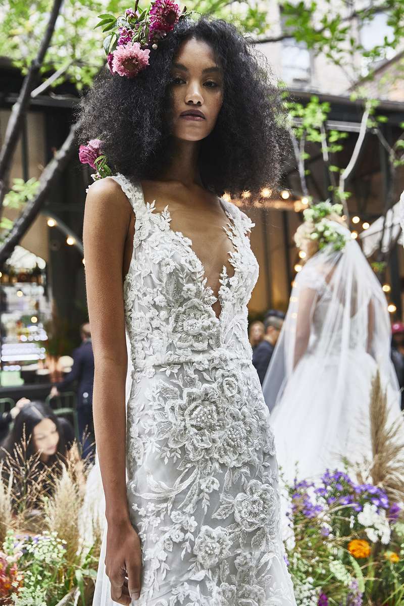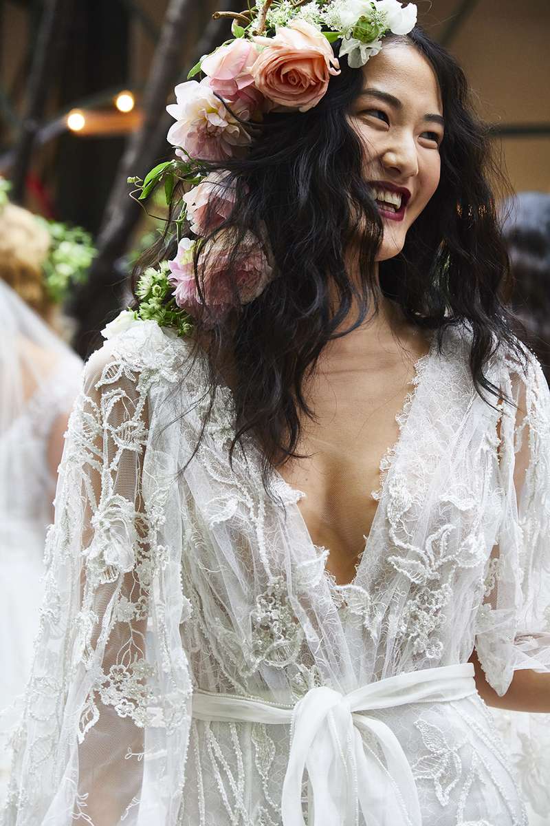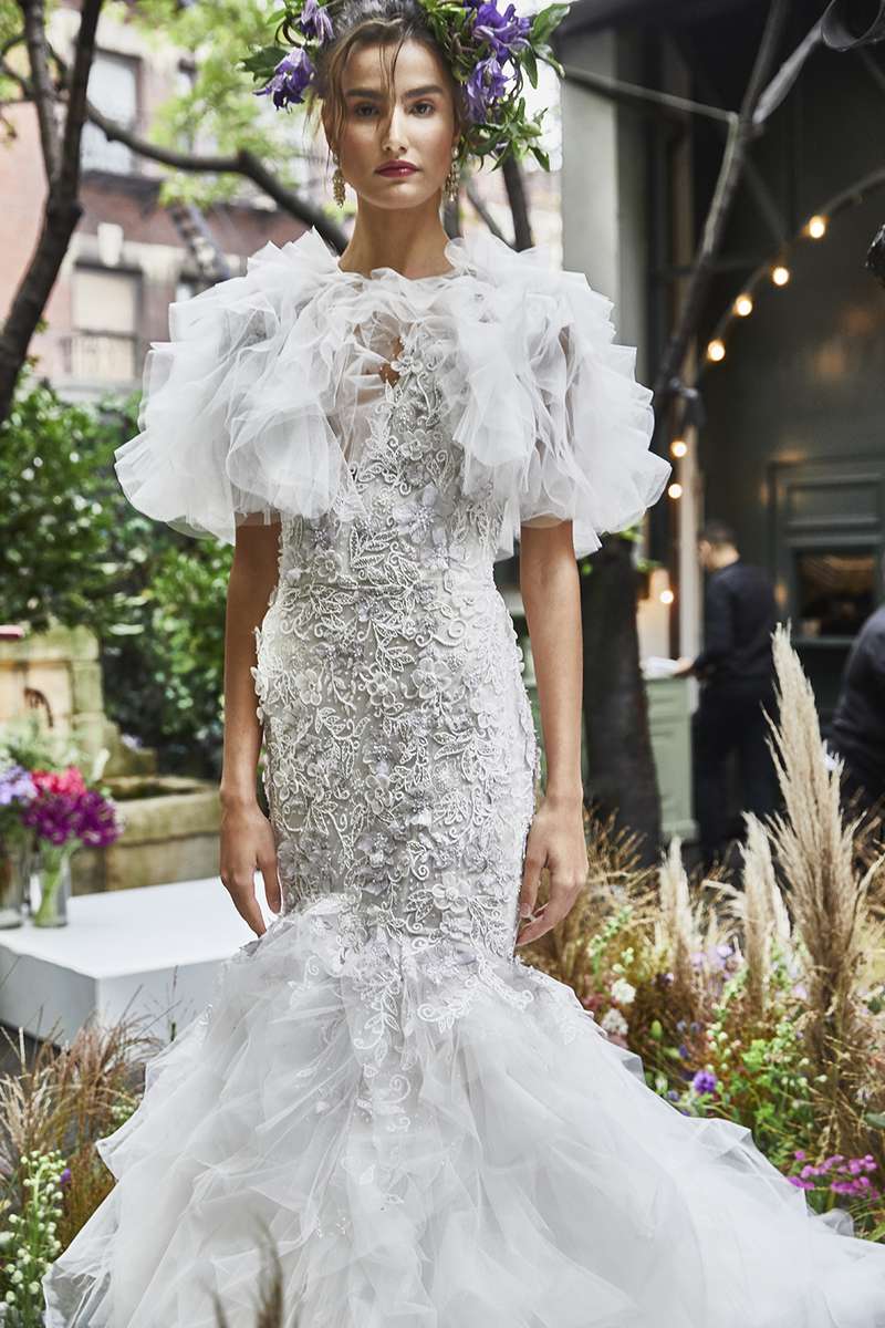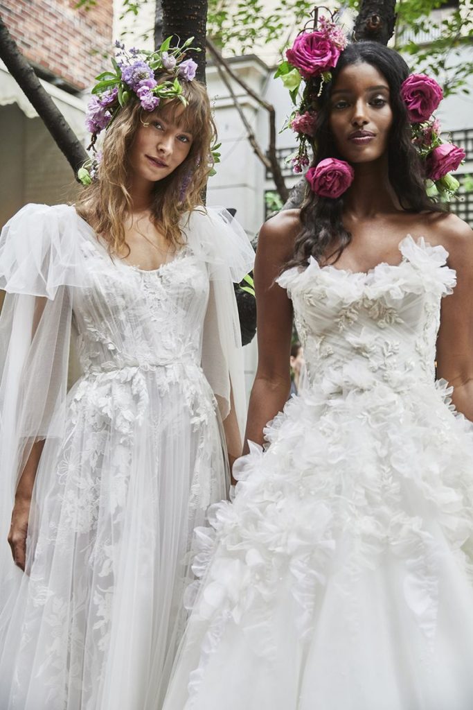 Per la collezione sposa Marchesa Fall 2020, Georgina Chapman ha trovato ispirazione nell’ikebana, l’arte giapponese della disposizione dei fiori recisi, in questo modo il fiore, elemento signature del brand, viene portato ad un livello che va oltre i ricami ed i petali 3D.