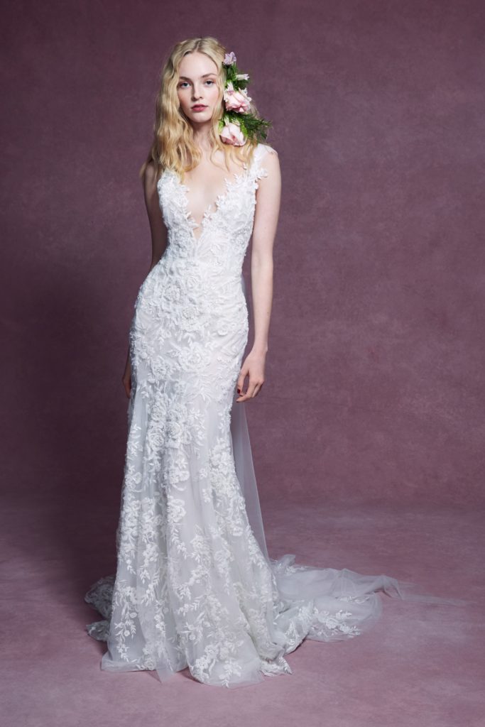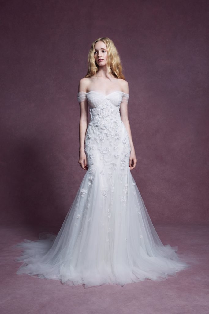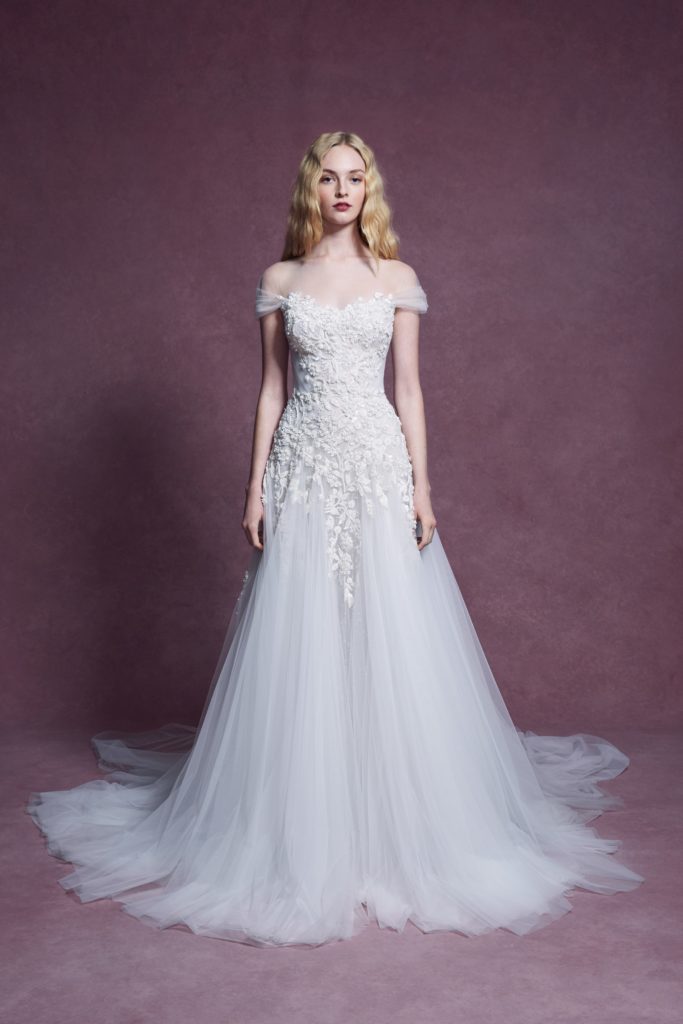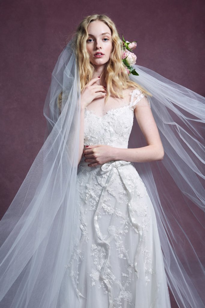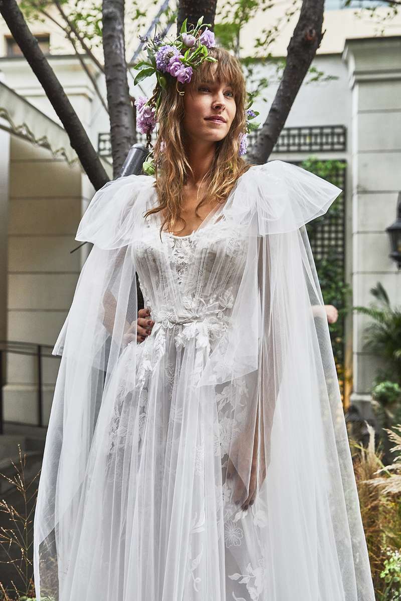 Questo concetto trova forma in abiti da sposa dall’incredibile leggerezza, che notiamo specialmente nei ball gowns per i quali al posto delle crinoline, gonne a strati e rigidi bustier, viene usato solo il tulle.