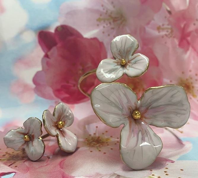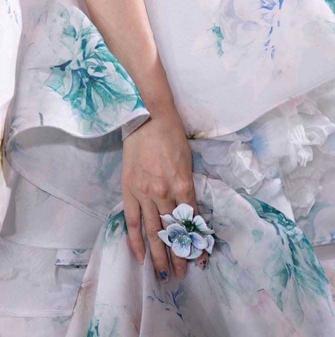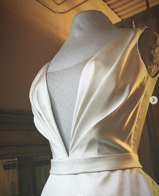 L’abito, così come molti altri modelli della collezione, è abbinato a gioielli Baccarat, con cui Ines DI Santo ha attivato una partnership. Si tratta di accessori smaltati come anelli e orecchini, che completano perfettamente gli abiti da sposa.