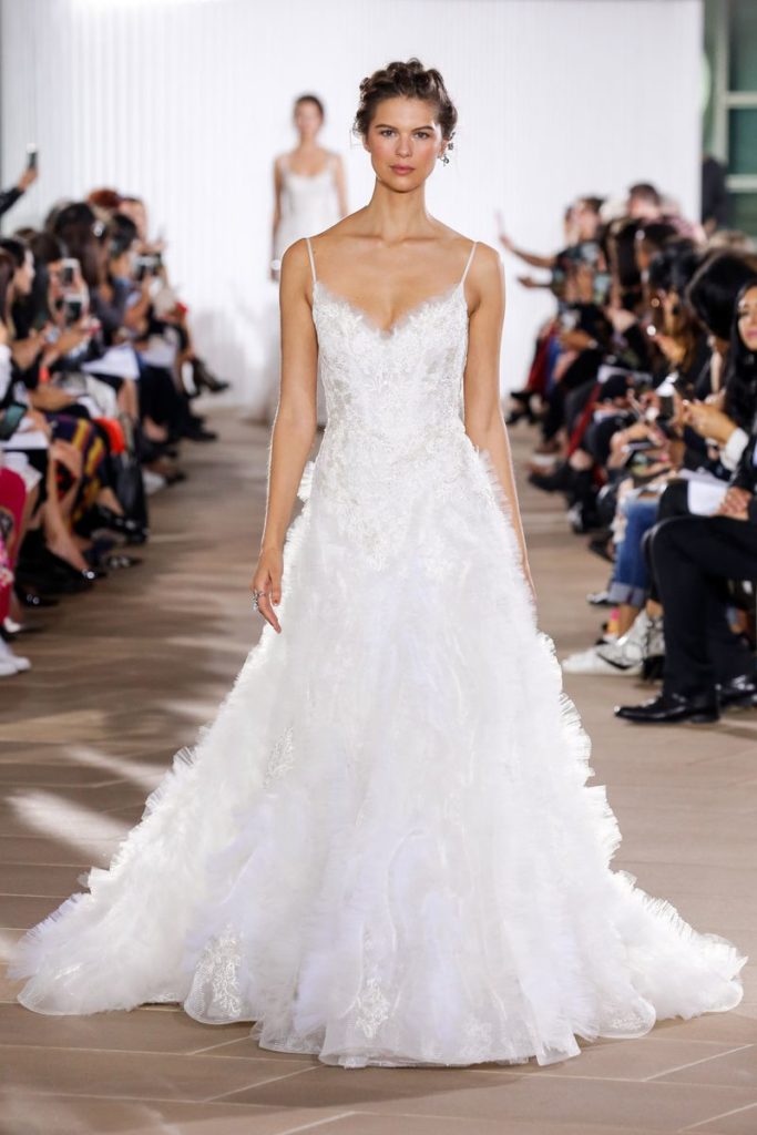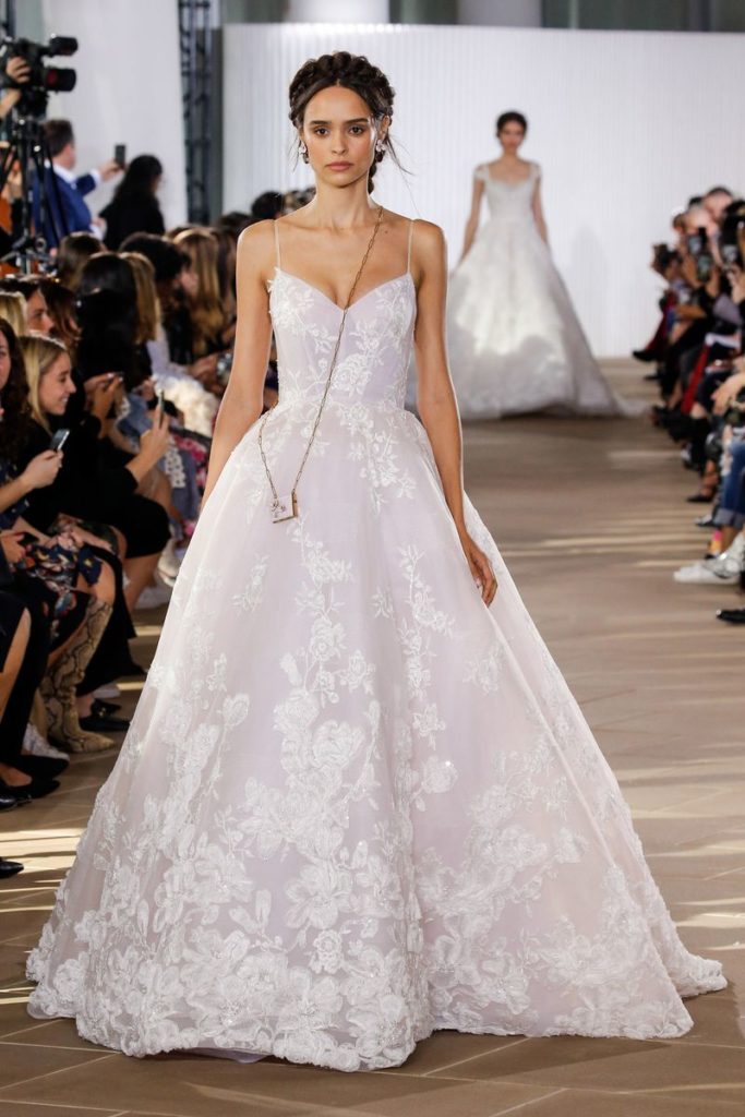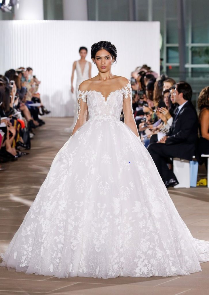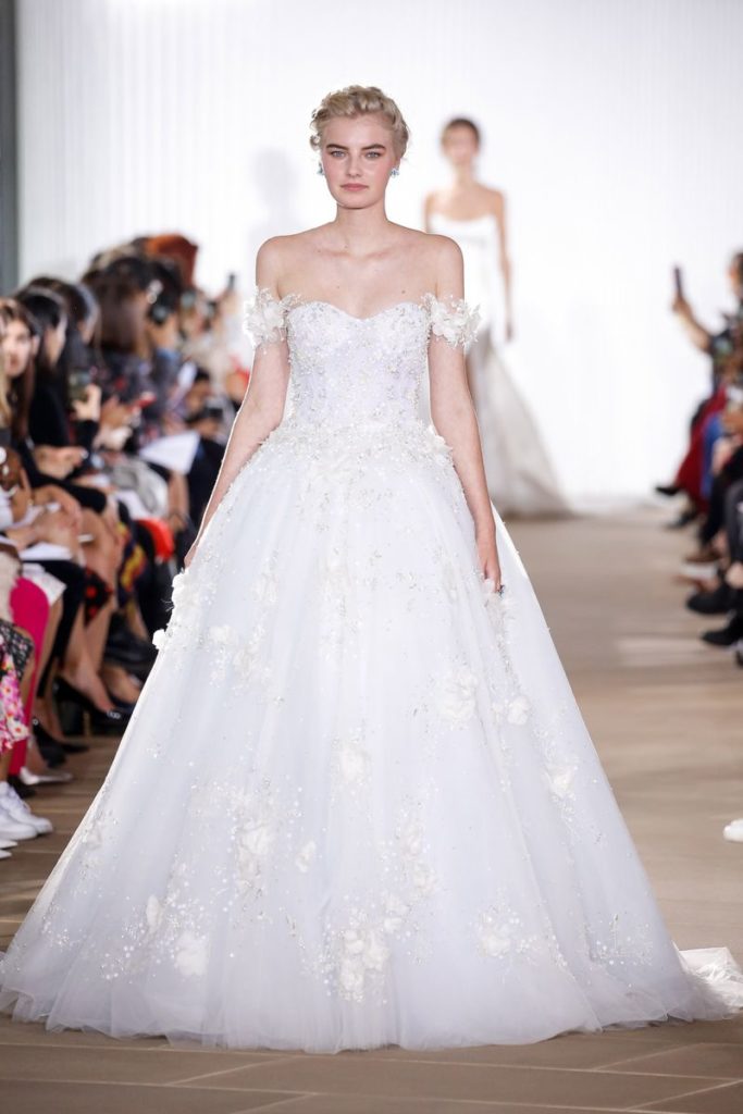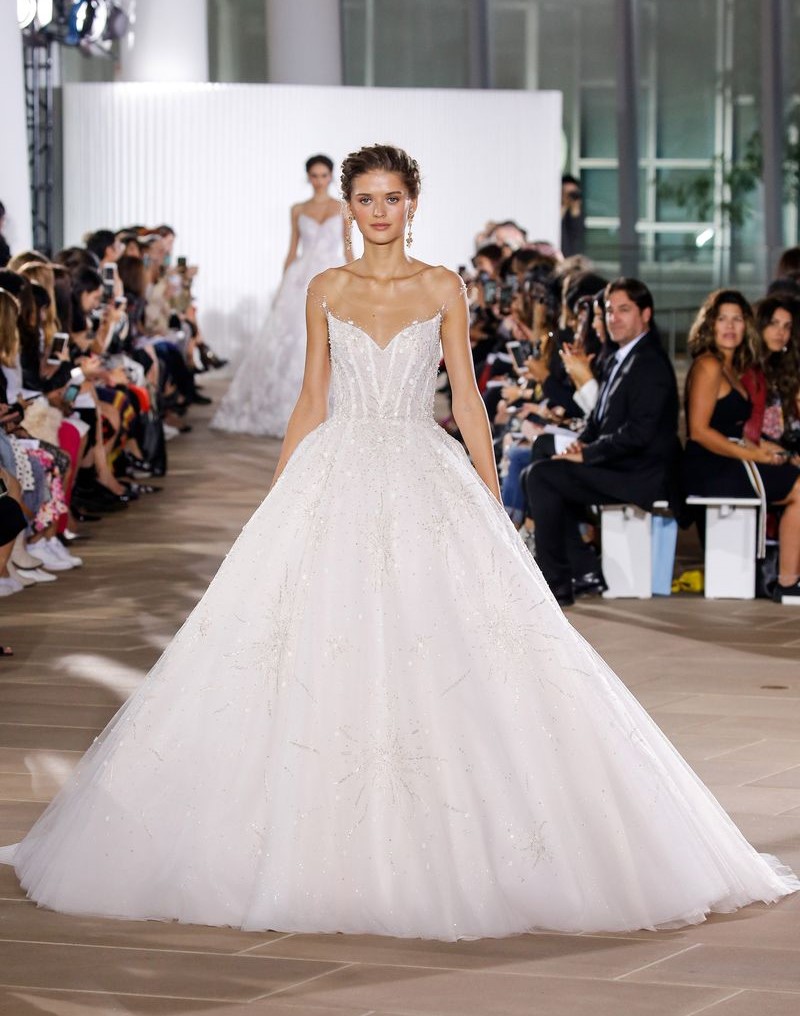 Fedele alla tradizione del brand, la collezione comprende molti ball gown, gli abiti da sposa principeschi in preziosi tessuti come il tulle, abbellito da ricami e pizzo, e il sontuoso satin di seta.