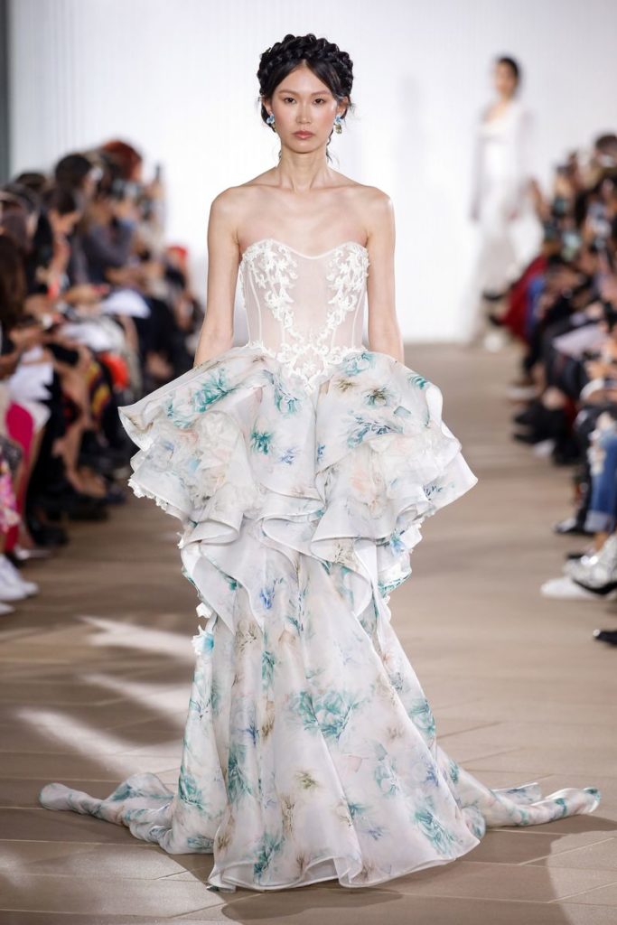 La collezione sposa Ines Di Santo è ispirata all’Impressionismo e vuole “catturare lo spirito della sua magnifica trasformazione del colore e della texture, l’effetto sfumato della luce e la magia della ariosa trasparenza”, come racconta il brand.