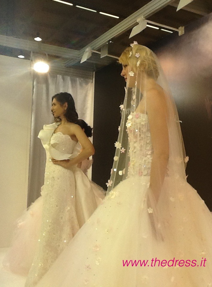 L'atelier presenta tradizionalmente ogni anno le nuove collezioni a Sì Sposaitalia, dove ho potuto assistere alla spettacolare sfilata, apprezzata moltissimo anche dalla bridal stylist Renée Strauss, amica di lunga data della stilista, che con lei condivide non solo l'esperienza di stilista di abiti da sposa ma anche le gioie comuni di chi ha famiglie numerose.