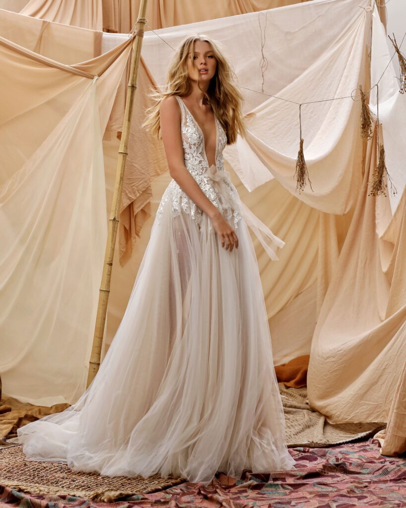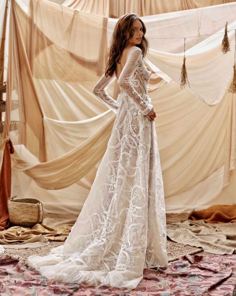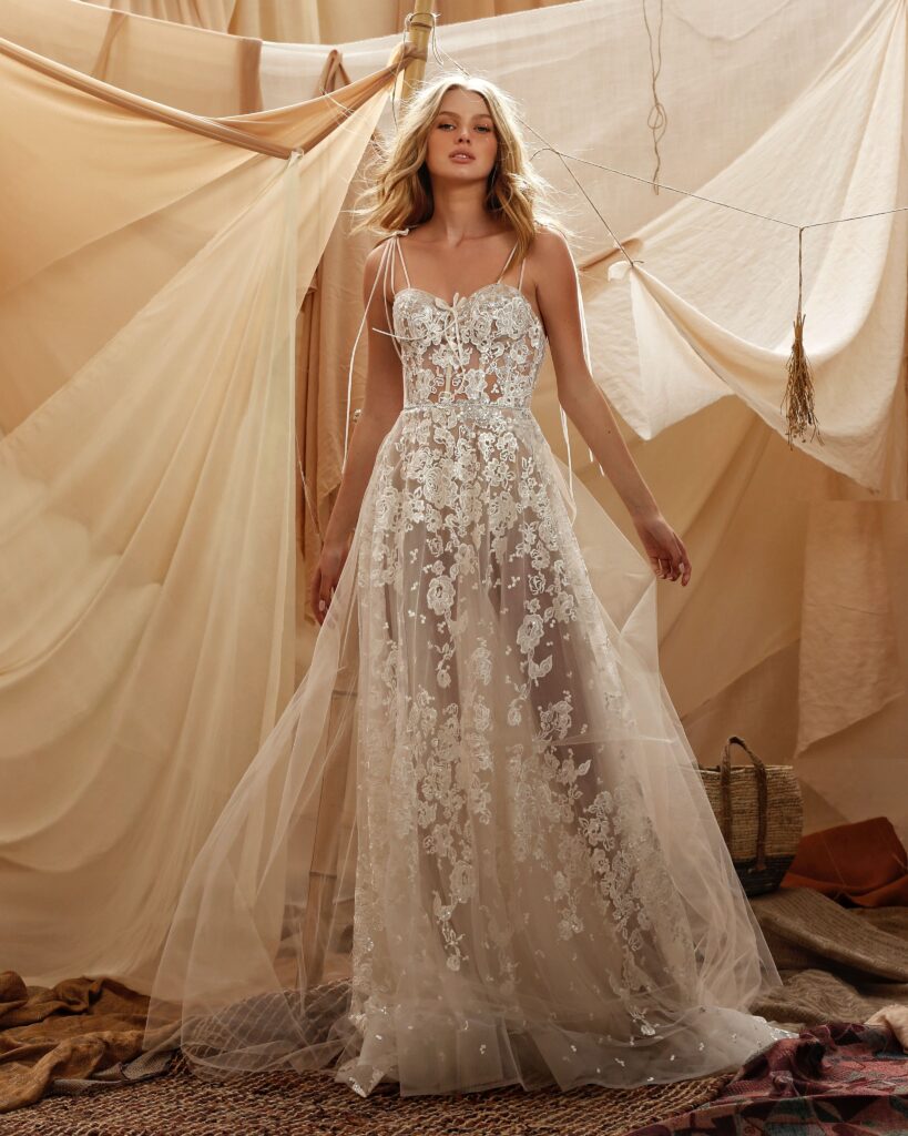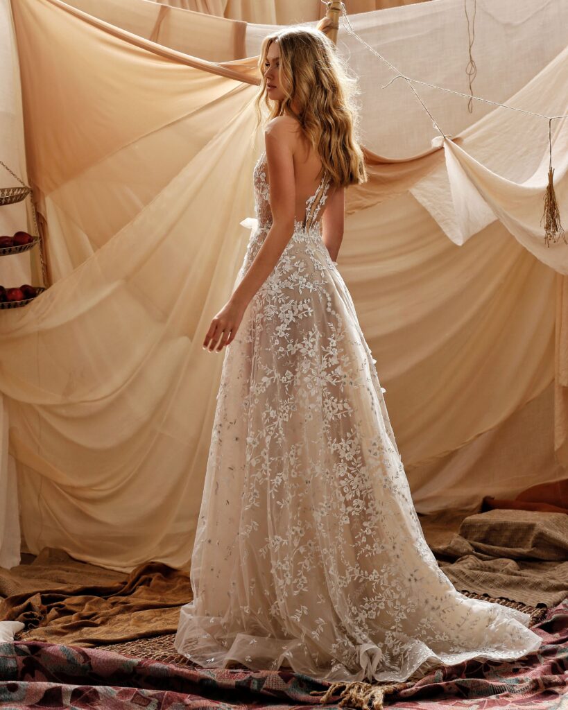 La collezione sposa Muse Spring 2021, racconta il brand, “è piena di stupore, immaginazione e romanticismo; una collezione incantevole che rappresenta l’idealizzazione dello stile bohemien”.
