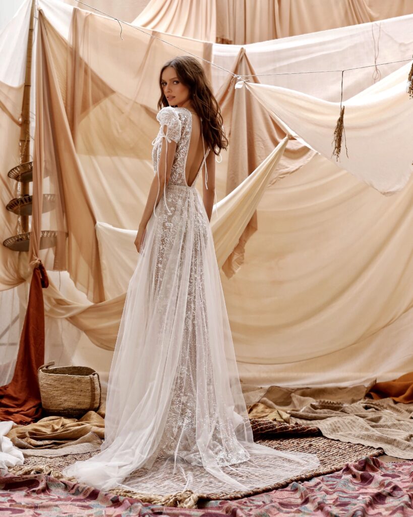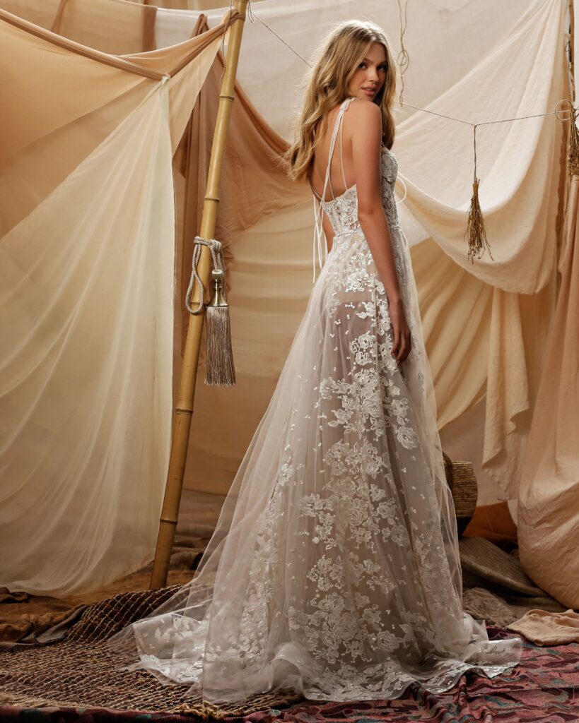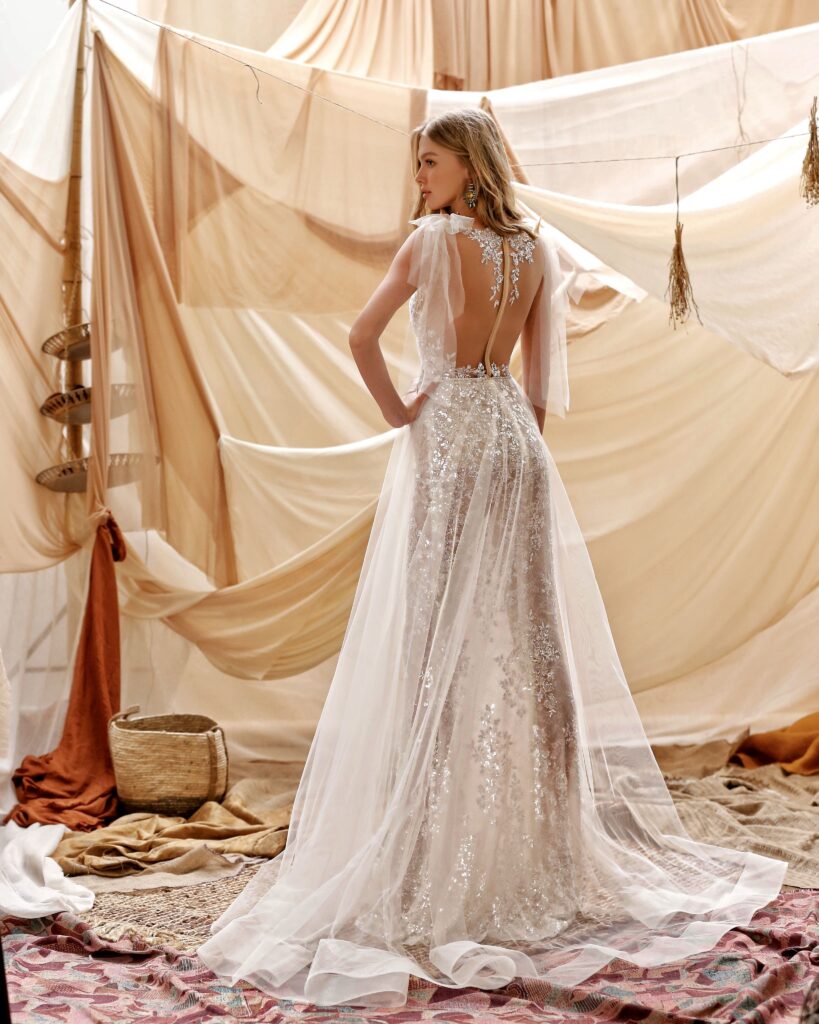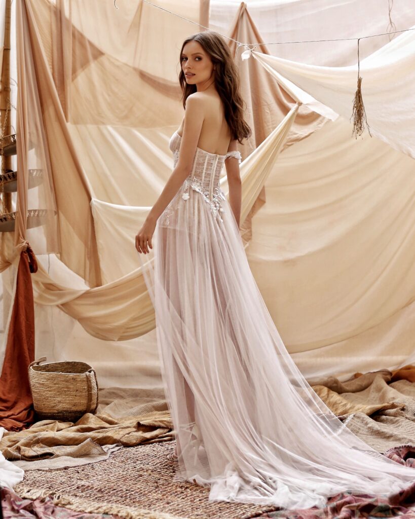 La collezione sposa Muse Spring 2021, racconta il brand, “è piena di stupore, immaginazione e romanticismo; una collezione incantevole che rappresenta l’idealizzazione dello stile bohemien”.