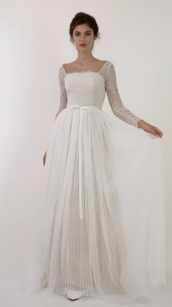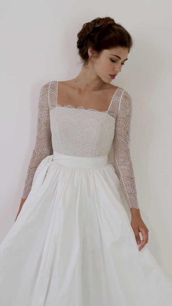 D. Notiamo in particolare, che la collezione sposa 2021 è molto versatile, includendo modelli dalle linee pulite e tessuti preziosi che possono essere arricchiti con l’aggiunta di elementi quali gonne, top e persino golfini, confermando la tua passione per il knitwear…