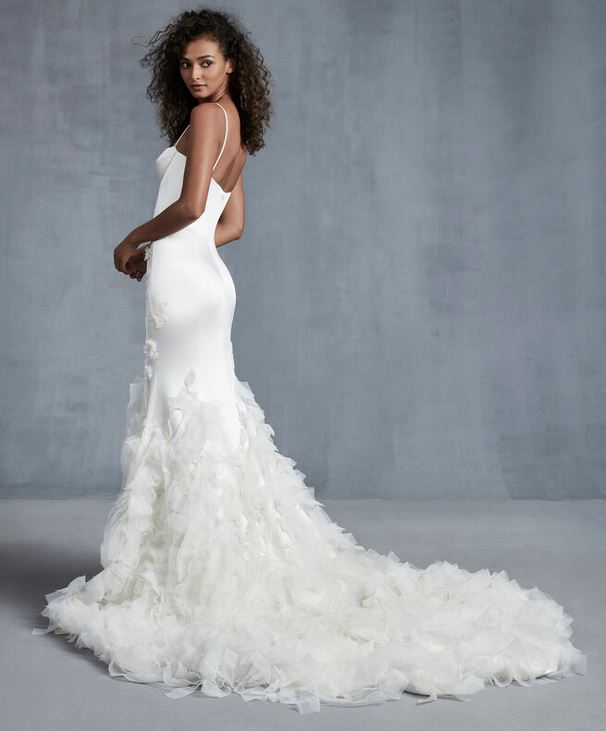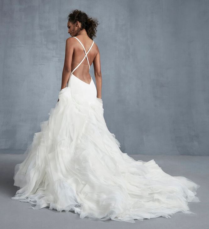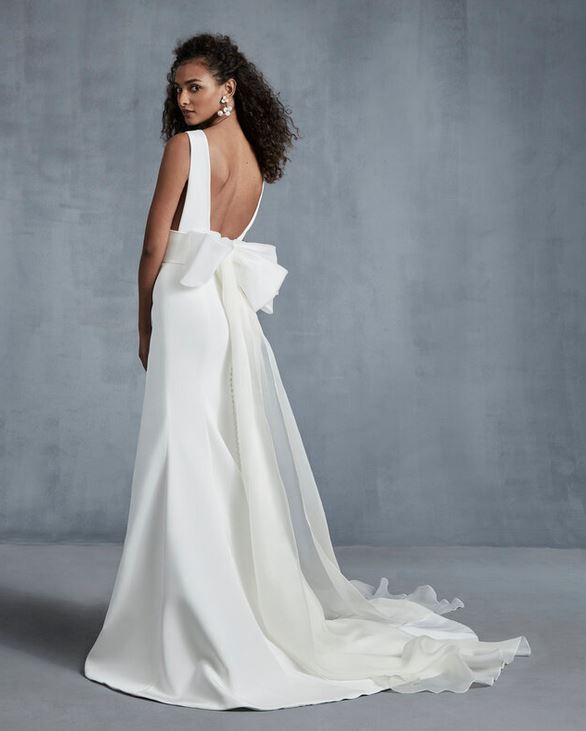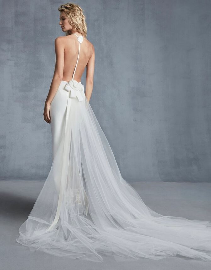 Davvero di gran classe, con richiami alle dive della Hollywood degli anni Venti e Trenta, l’abito da sposa “Want”, un modello a tubino con una scollatura quadrata davanti mentre dietro la schiena è valorizzata da uno spettacolare scollo a cappuccio, davvero di grande effetto.