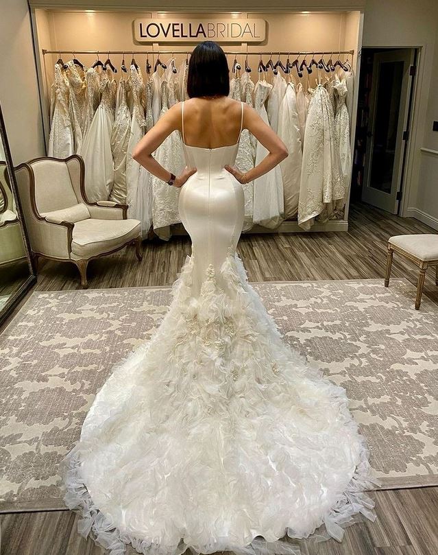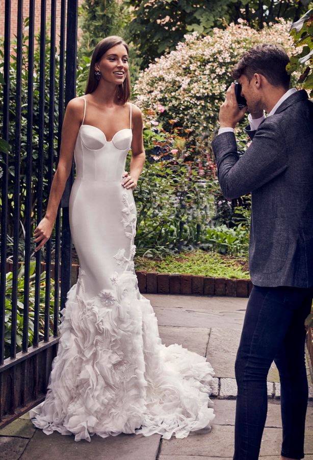 L’abito da sposa “Sublime” è un modello stile vecchia Hollywood con corsetto, applicazioni floreali asimettriche a cascata, che avvolge le forme per un effetto mozzafiato.