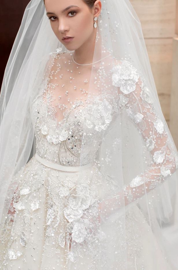 Davvero spettacolari, come sempre, i ricami floreali e in particolari i ricami floreali 3D di grandi dimensioni, che trasformano questi abiti da sposa in romantici giardini fioriti.