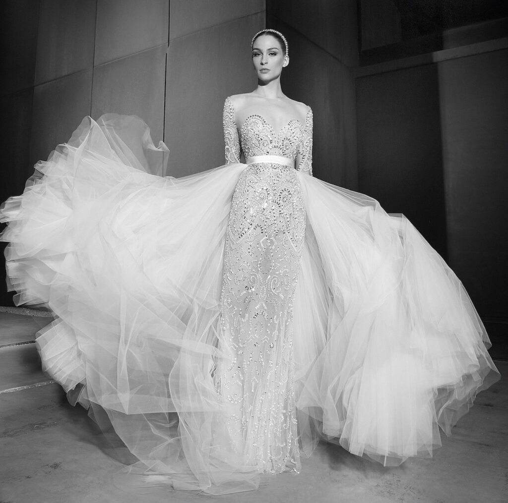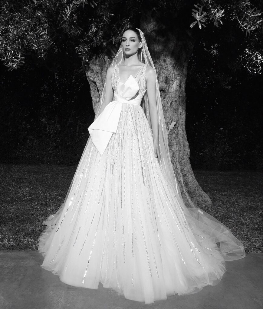 Come detto, la collezione del celebre couturier di origini libanesi tanto amato dalla star di tutto il mondo, è estremamente versatile e lo vediamo dalla scelta di tessuti diversi nello stesso abito, nei ricami arditi e nell’abbinamento ad un’ampia gamma di accessori: gonne, veli e mantelle, che possono essere aggiunti all’abito per aumentarne gli usi.