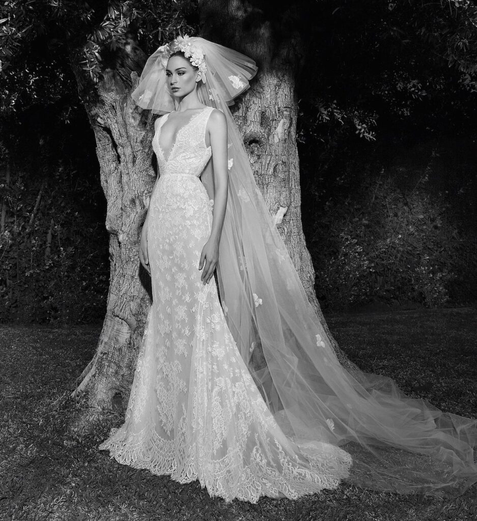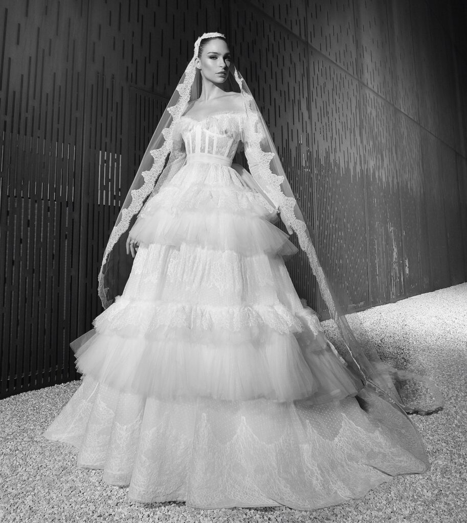 Eccentrica, versatile e dall’eleganza eterna, la collezione sposa Zuhair Murad Spring 2022 “rivisita l’epoca Yéyé – spiega il brand – ed i look retrò per una sposa che desidera essere seducente ed accattivante nel suo giorno magico. L’atmosfera di evanescente sensualità domina in questa collezione dedicata all’amore e al glamour”.