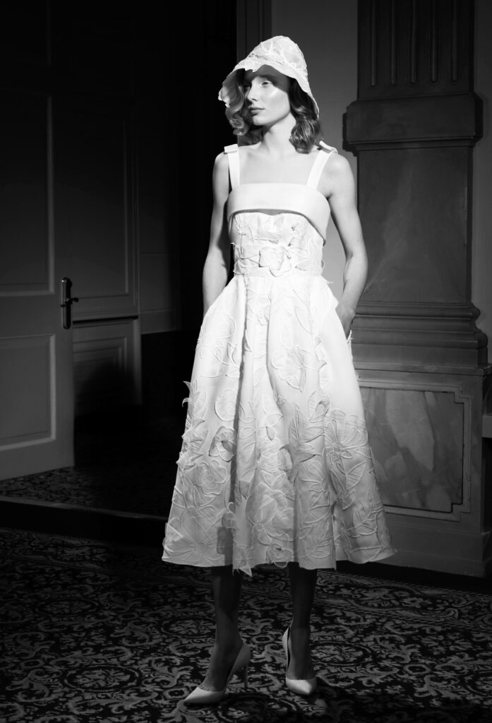 La collezione sorprende anche con proposte di abito da sposa corto, perfetti per nozze civili.